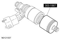 Using the Differential Bearing Cone Installer and Handle, install new VCT (Variable Camshaft Timing) solenoid seal(s).