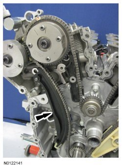 14. NOTE: Removal of the VCT (Variable Camshaft Timing) oil control solenoid will aid in the removal of the primary timing chain.