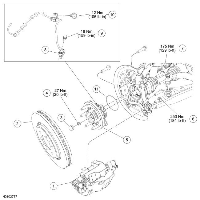 10. NOTICE: If the original wheel bearing and wheel hub is being installed, install a new wheel hub O-ring seal or damage to the wheel bearing may occur.