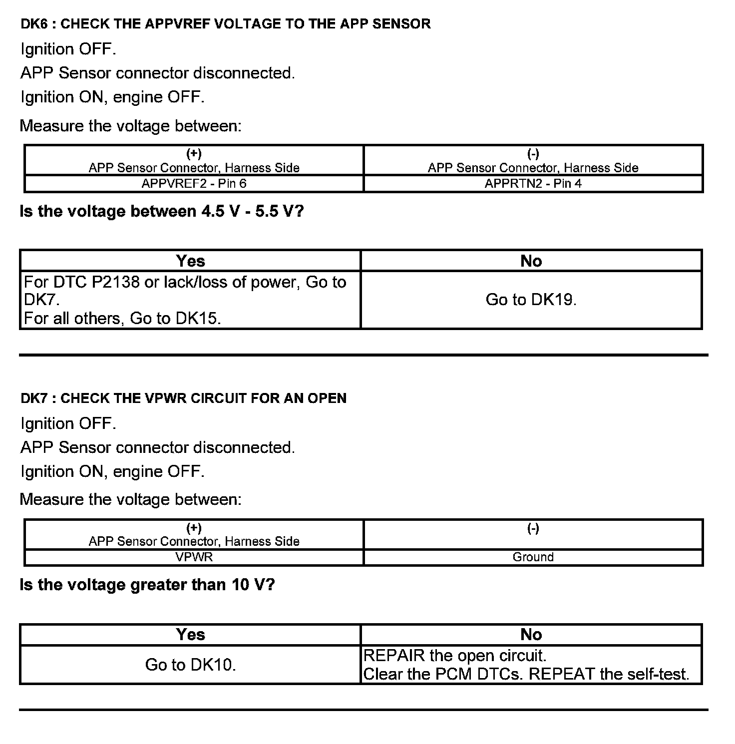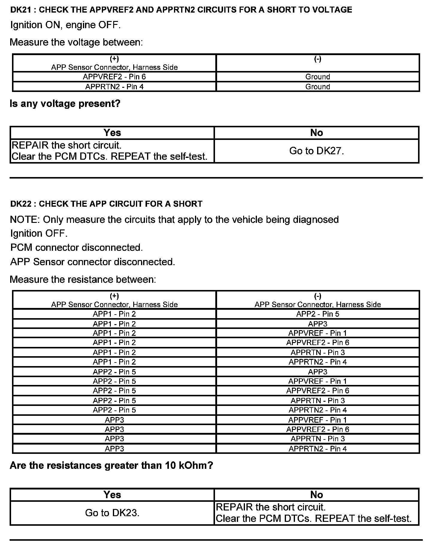 Test DK: Accelerator Pedal Position (APP) Sensor