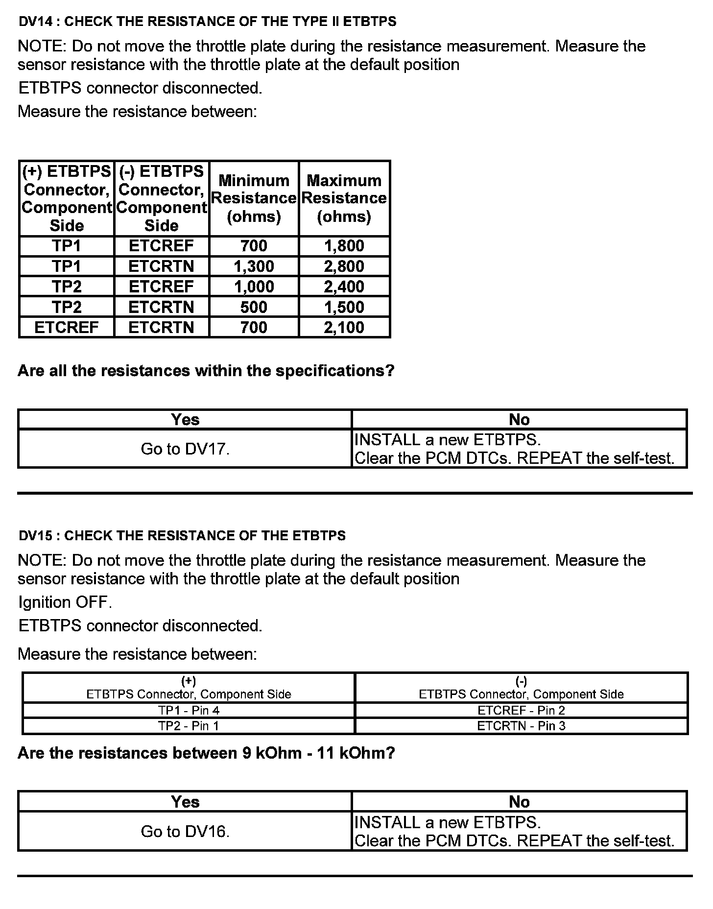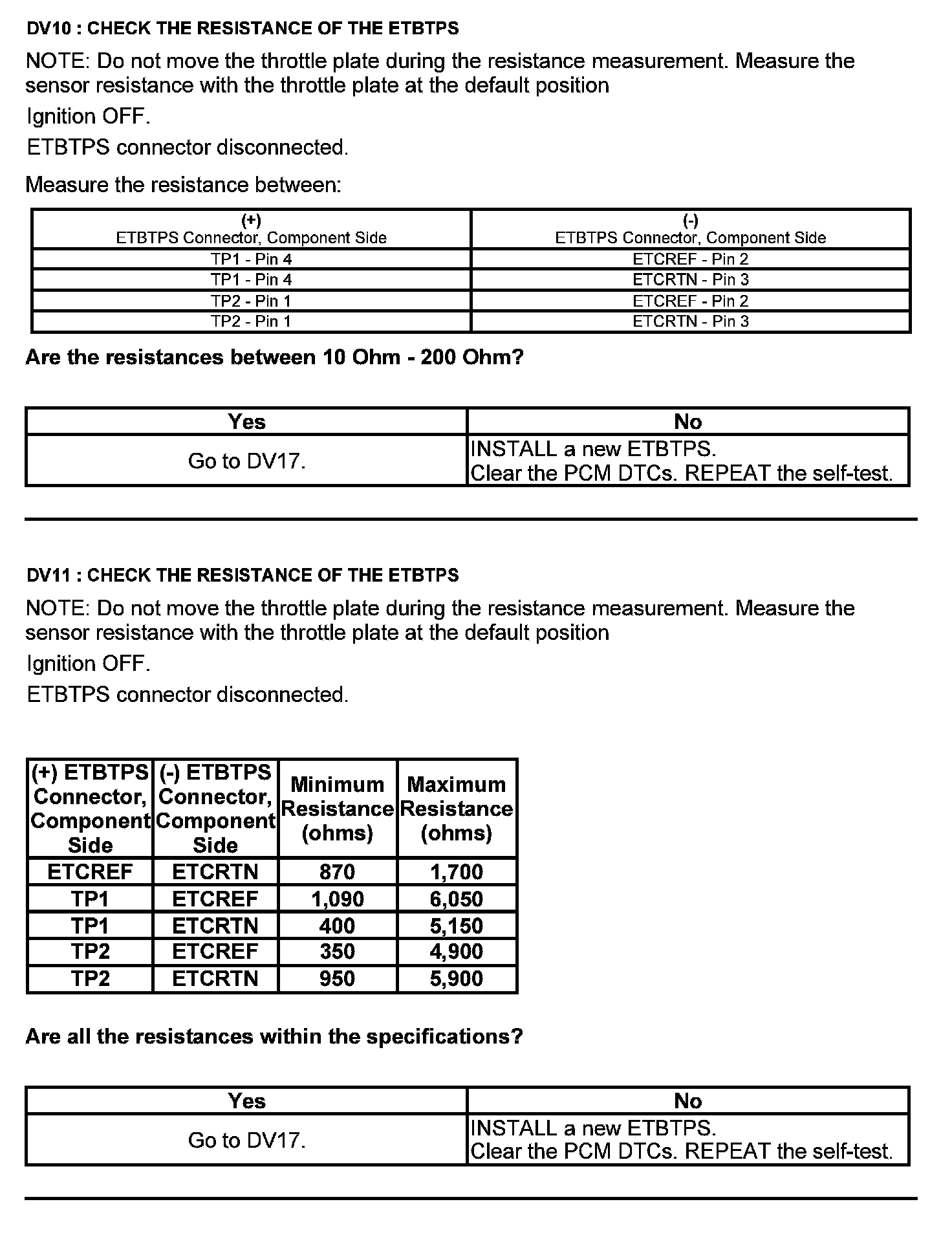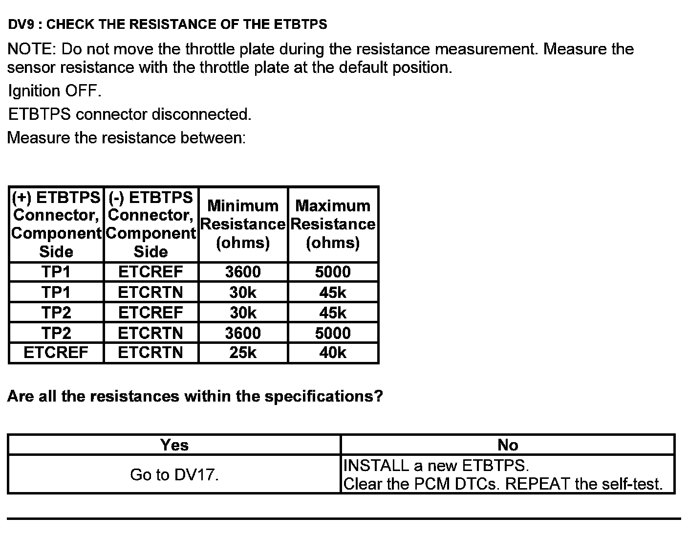 Test DV: Throttle Body Assembly Electronic Throttle Control (ETC)
