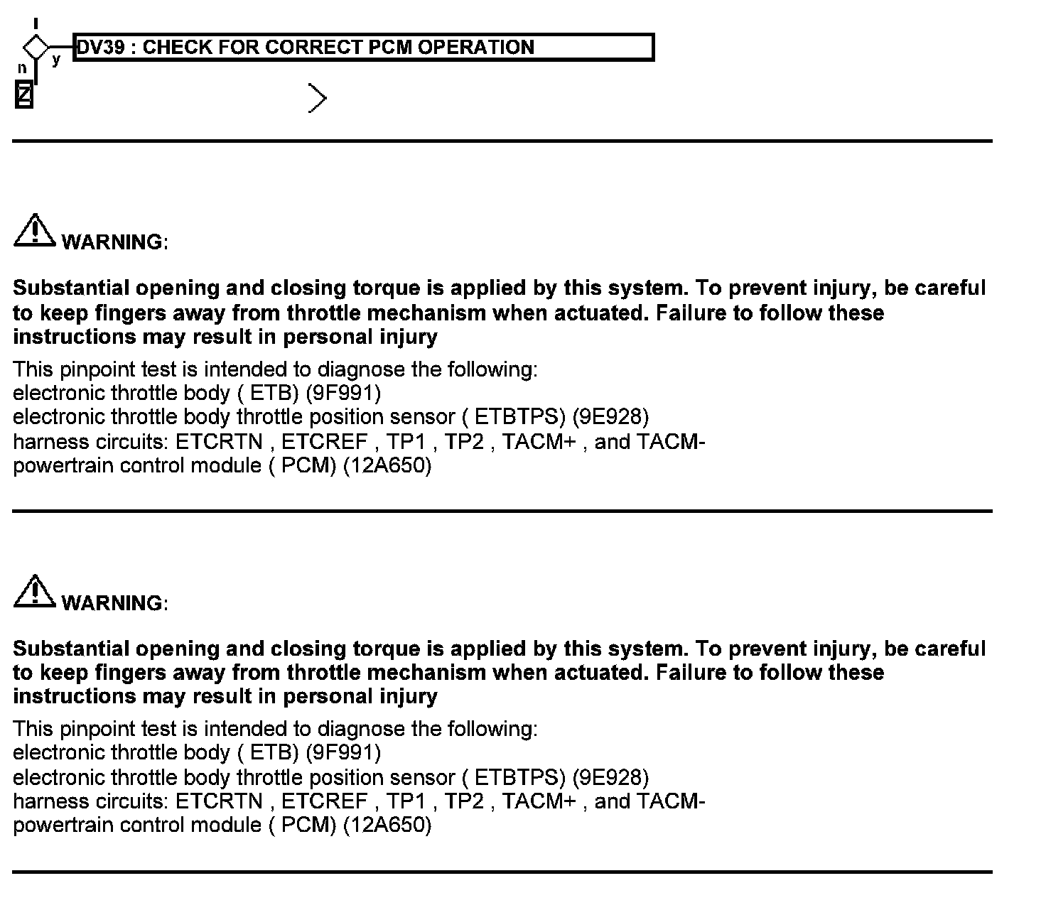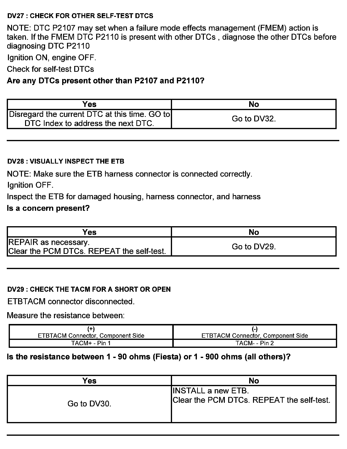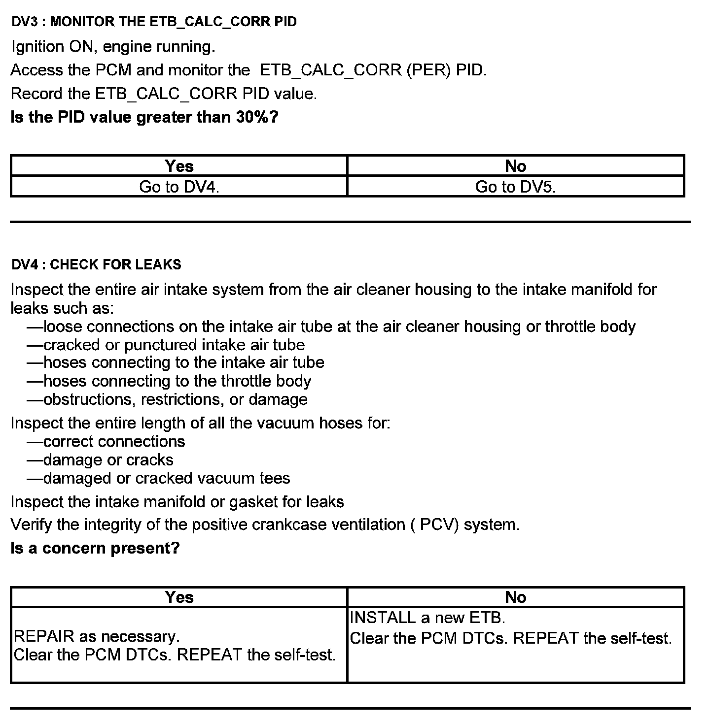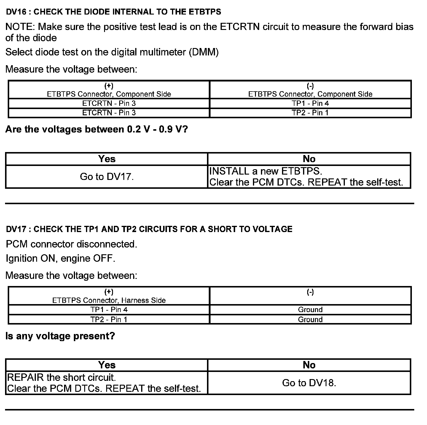 Test DV: Throttle Body Assembly Electronic Throttle Control (ETC)