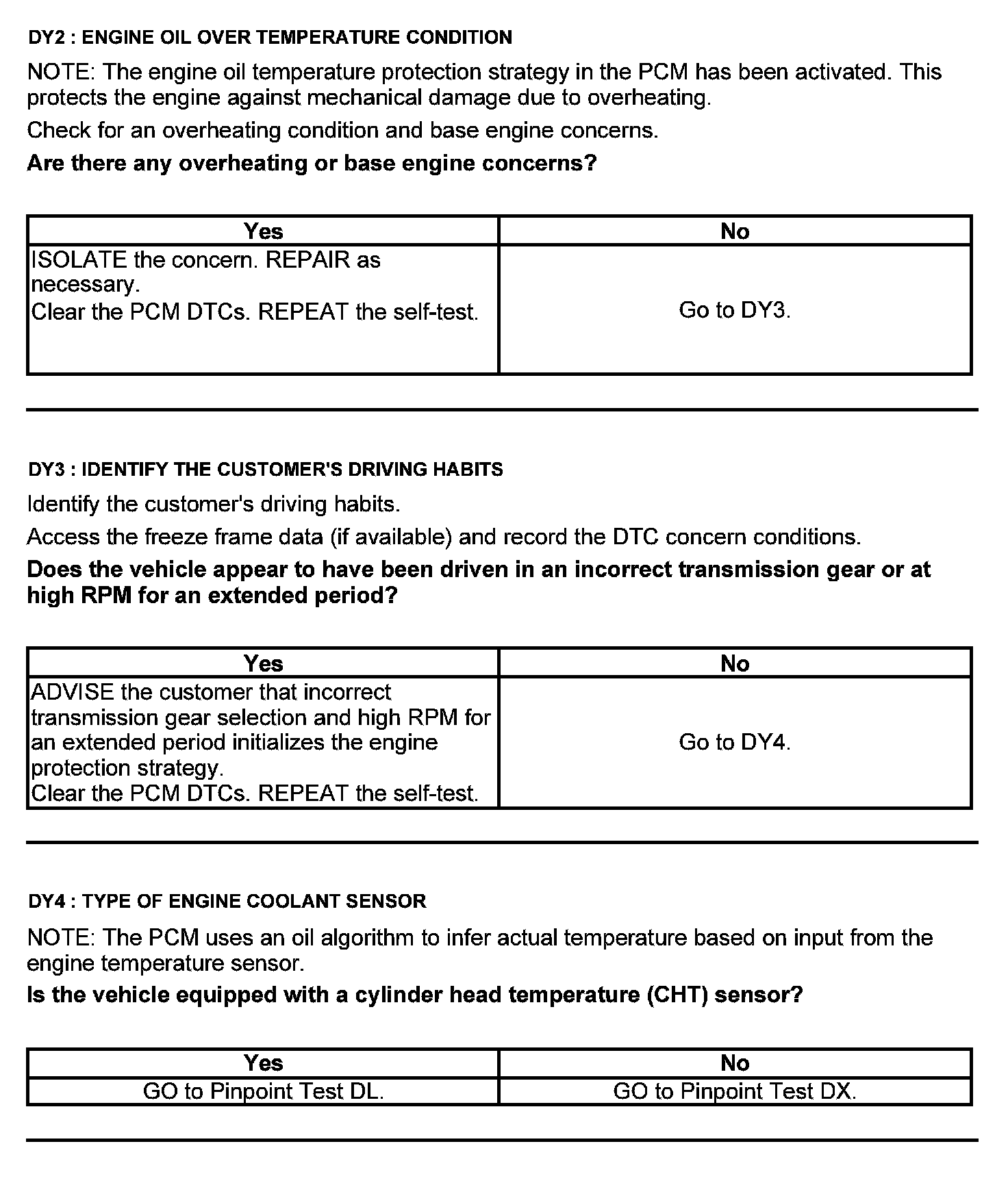 Test DY: Engine Oil Temperature (EOT) Sensor