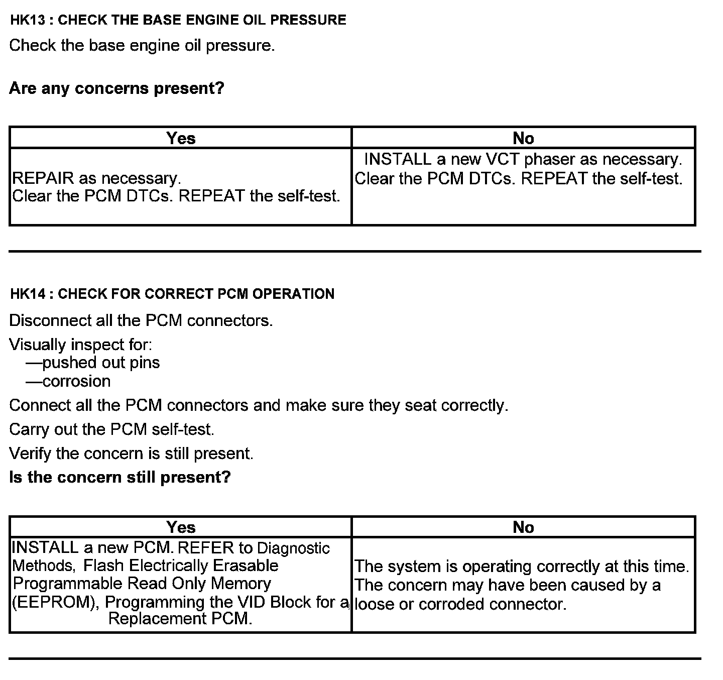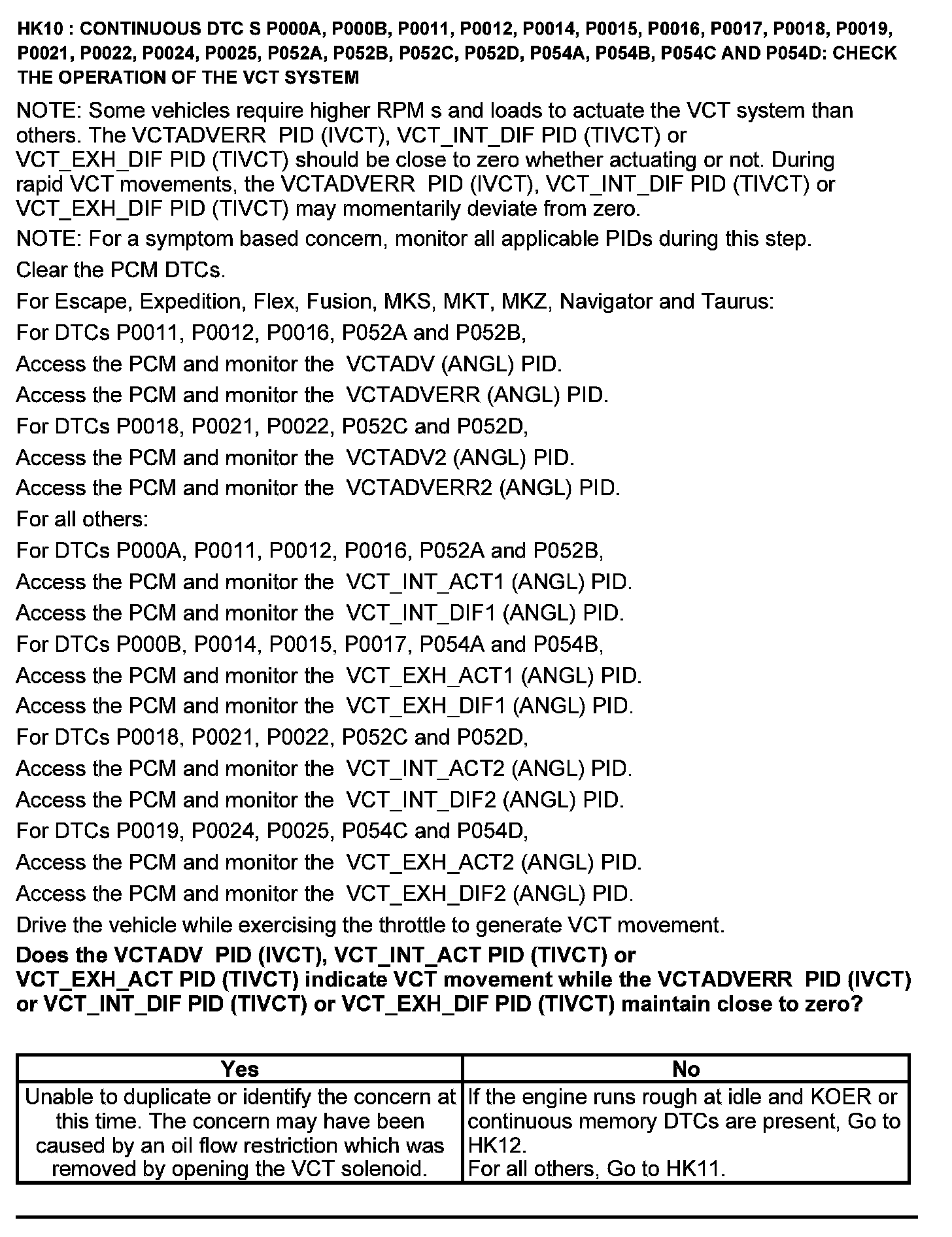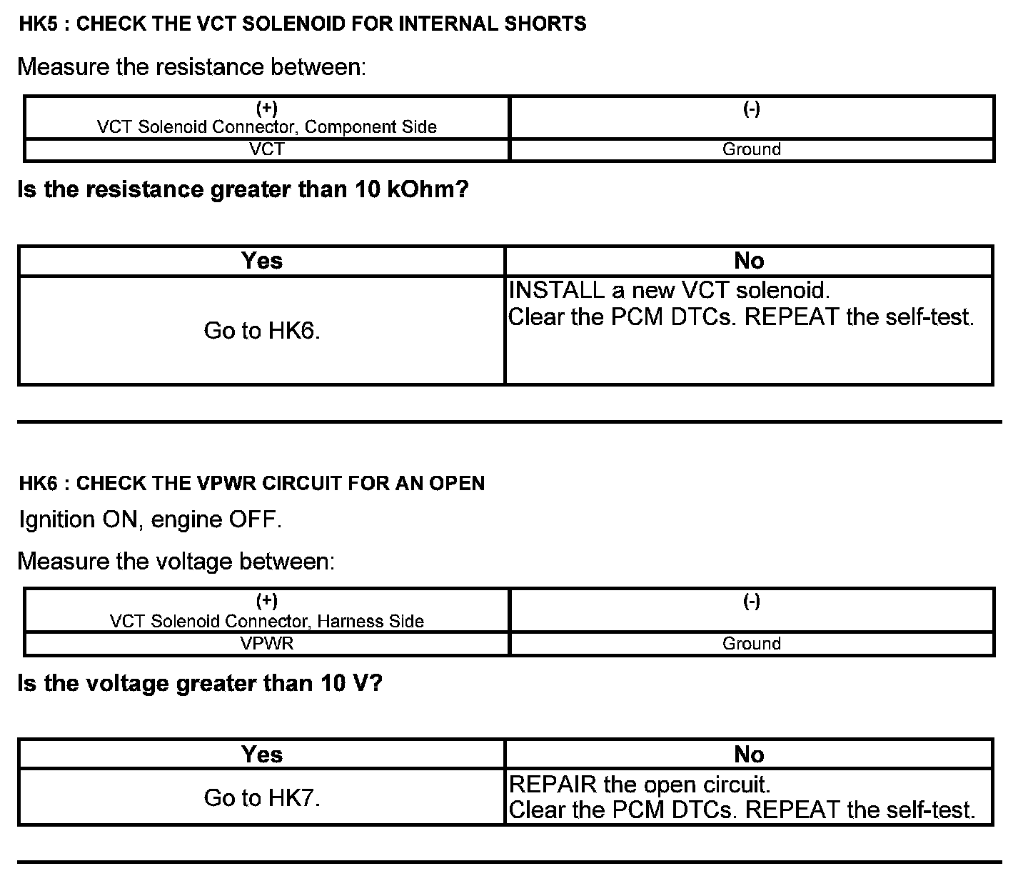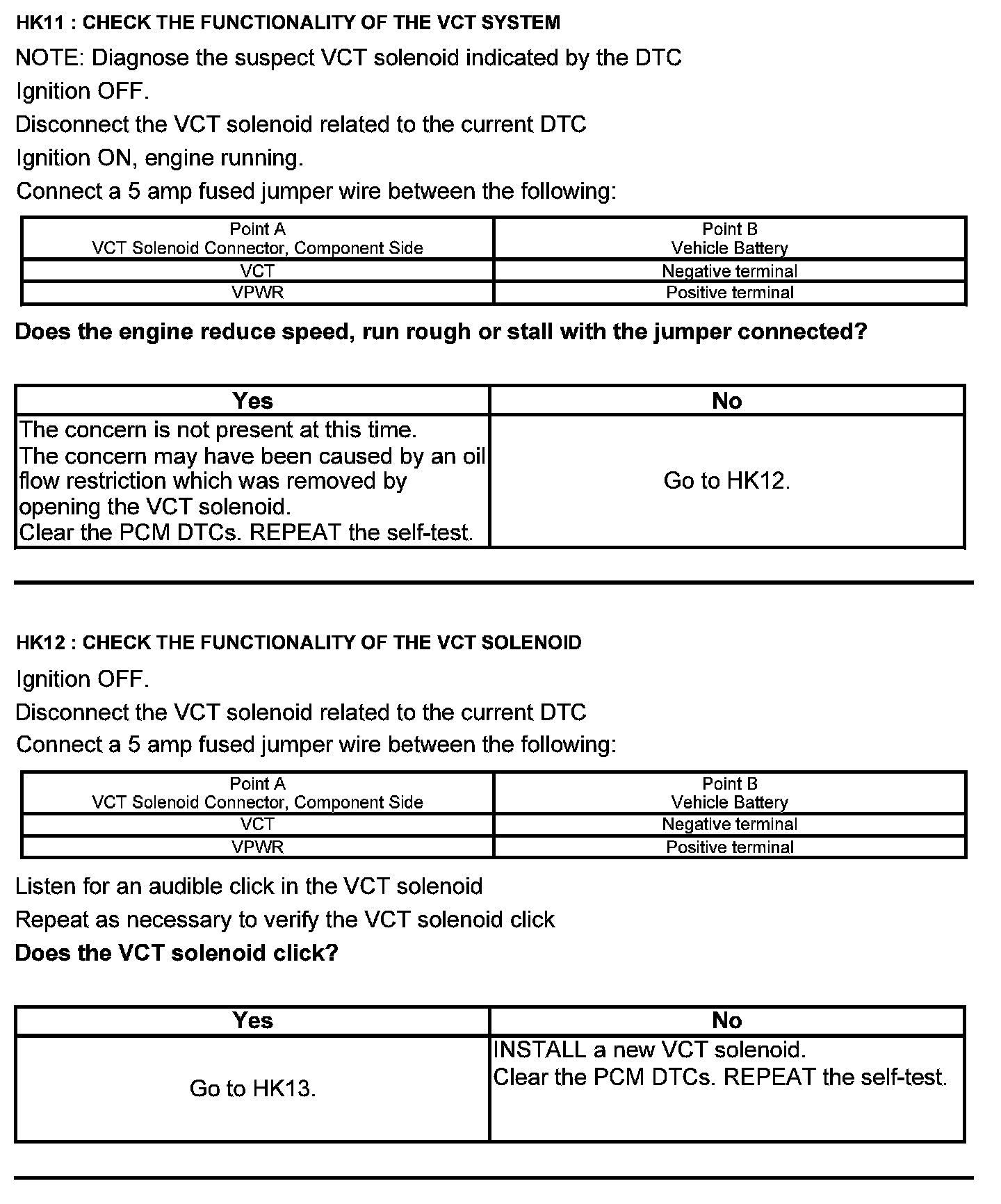 Test HK: Variable Camshaft Timing (VCT)