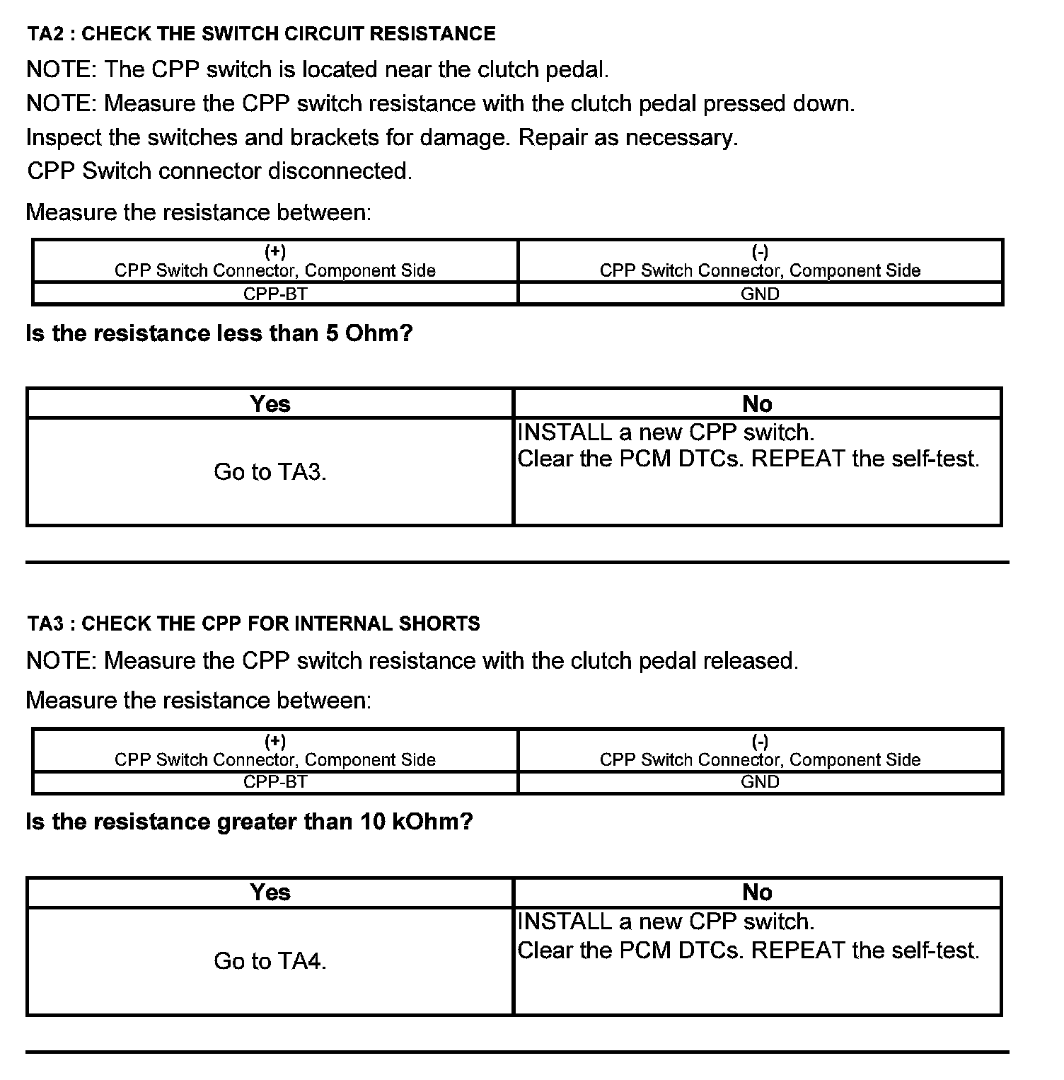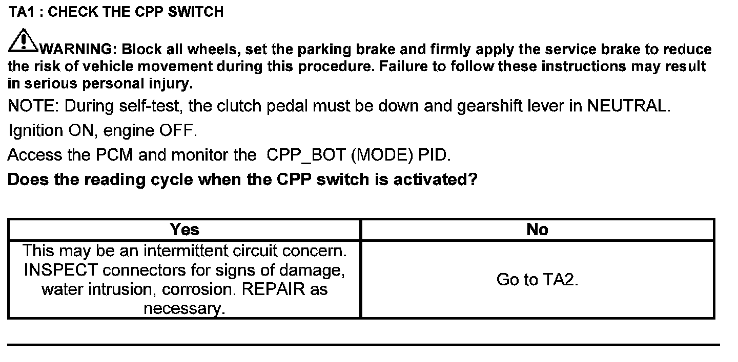 Test TA: Clutch Pedal Position (CPP#2) Switch