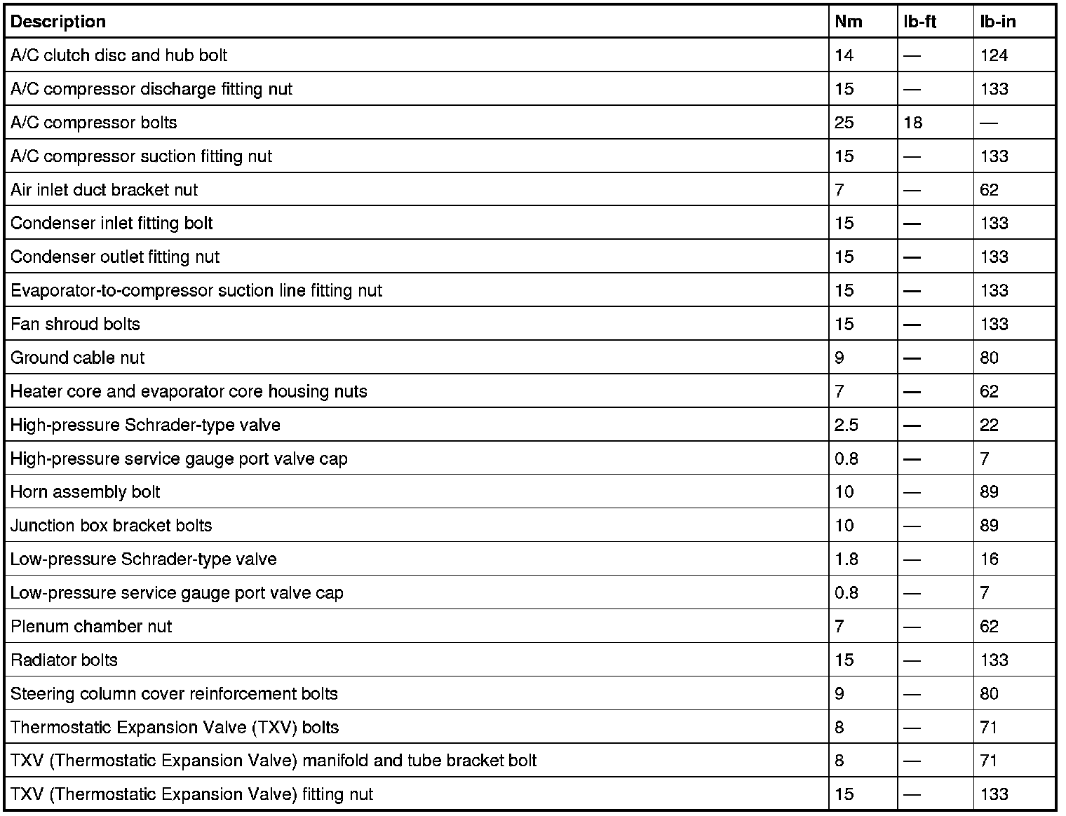 Torque Specifications