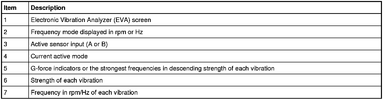 The Electronic Vibration Analyzer (EVA) is a hand-held electronic scan tool which will assist in locating the source of unacceptable vibrations. The vibration sensor can be remotely mounted anywhere in the vehicle for testing purposes. The unit displays the 3 most common vibration frequencies and their corresponding amplitudes simultaneously. A bar graph provides a visual reference of the relative signal strength (amplitude) of each vibration being displayed and its relative G-force. The keypad is arranged to make the EVA (Electronic Vibration Analyzer) simple to program and use. Some of the functions include the ability to average readings as well as record, play back and freeze readings. The EVA (Electronic Vibration Analyzer) has a strobe balancing function that can be used to detect imbalance on rotating components such as a driveshaft or engine accessories.