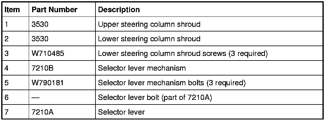 Remove the selector lever. For additional information, refer to Selector Lever- Column Shift .