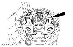 20. NOTICE: When installing the clutch assembly, do not separate the clutch pack assembly. The thrust washer in the lower clutch pack uses tabs to hold it in place. If the thrust washer is not in place, a transfer case clearance problem will occur.