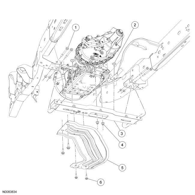 2. If equipped, remove the 4 skid plate bolts and remove the skid plate.