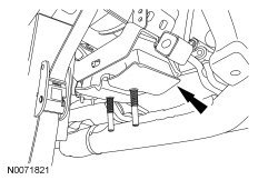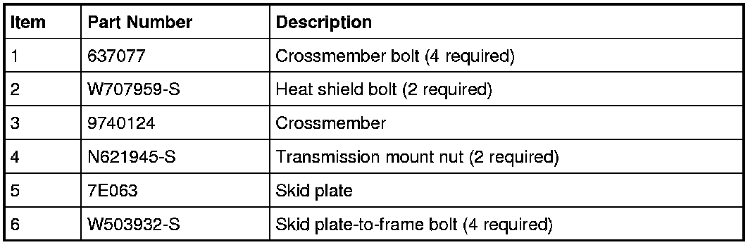 9. Remove the LH exhaust heat shield bolt from the crossmember.