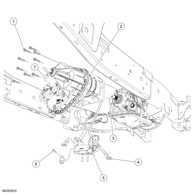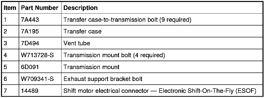 17. Separate the transfer case from the transmission and move the transfer case rearward 25.4 mm (1 in). Move the transfer case rearward off the output shaft and lower it from the vehicle.