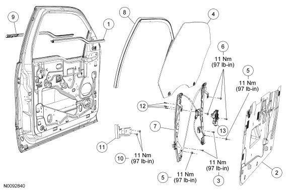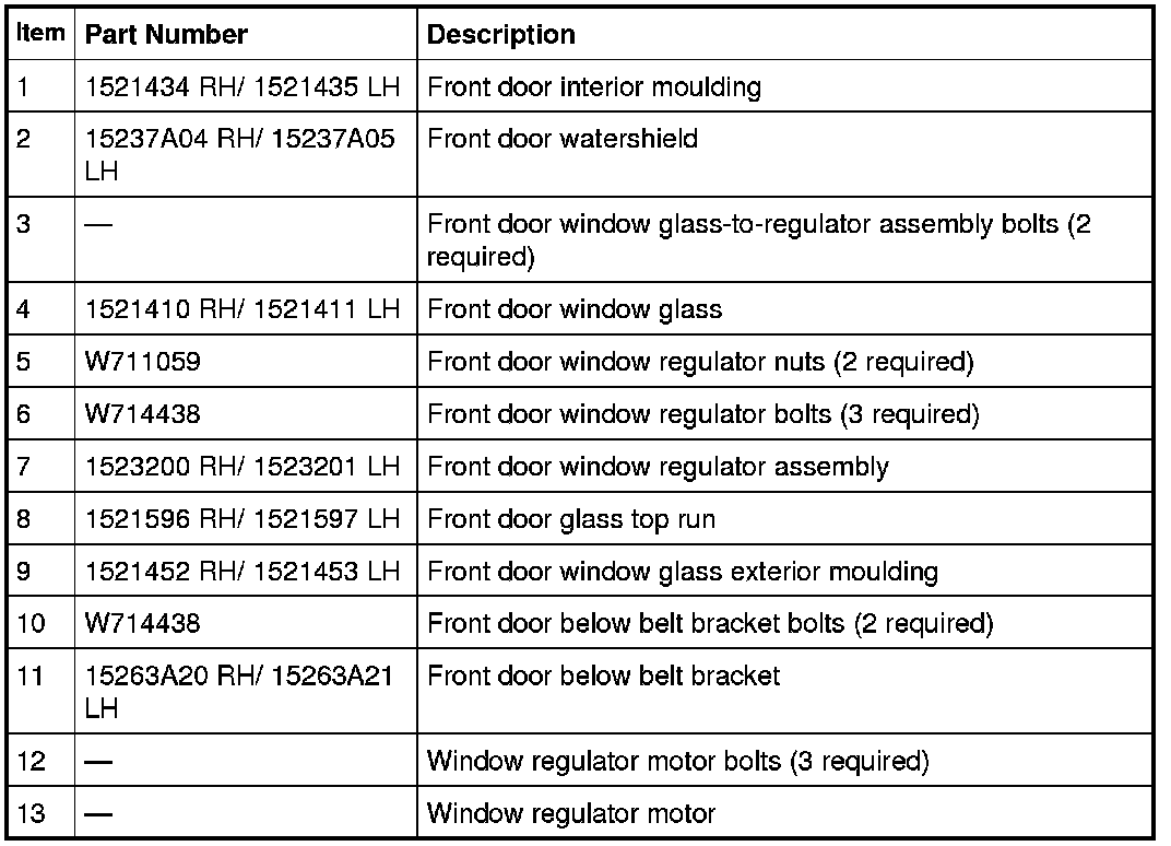 Glass, Frames and Mechanisms - Exploded View, Front Door