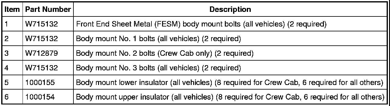 Remove the Front End Sheet Metal (FESM) body mount bolts.