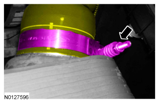 32. NOTICE: Do not allow the steering column shaft to rotate while the intermediate shaft is disconnected or damage to the clockspring can result. If there is evidence that the shaft has rotated, remove and recenter the clockspring.