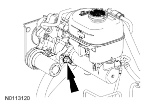 26. Using a suitable suction device, remove the power steering fluid from the power steering reservoir.