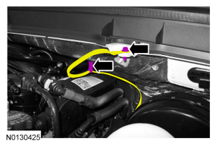 40. Release the RH battery cable retainer.