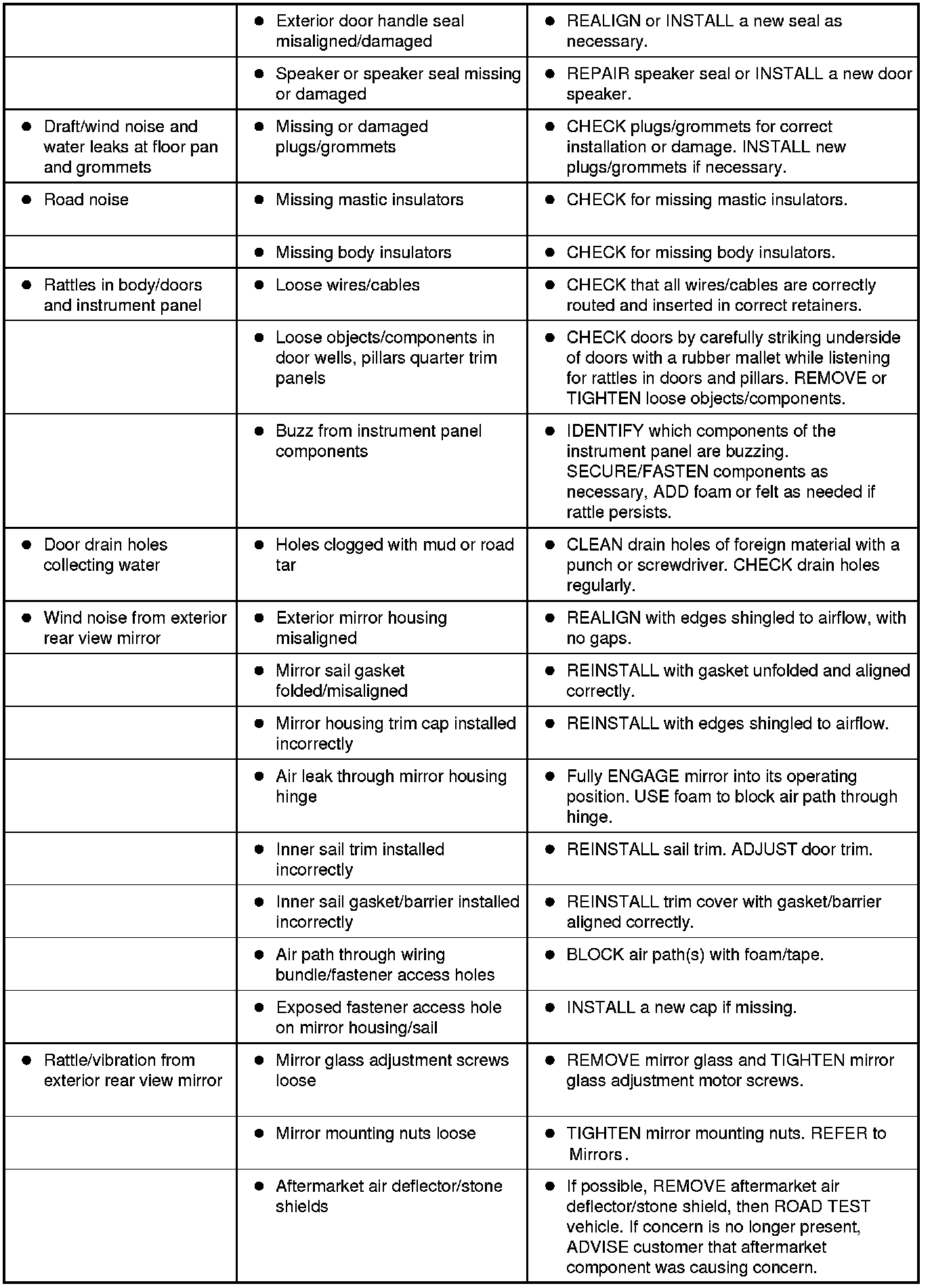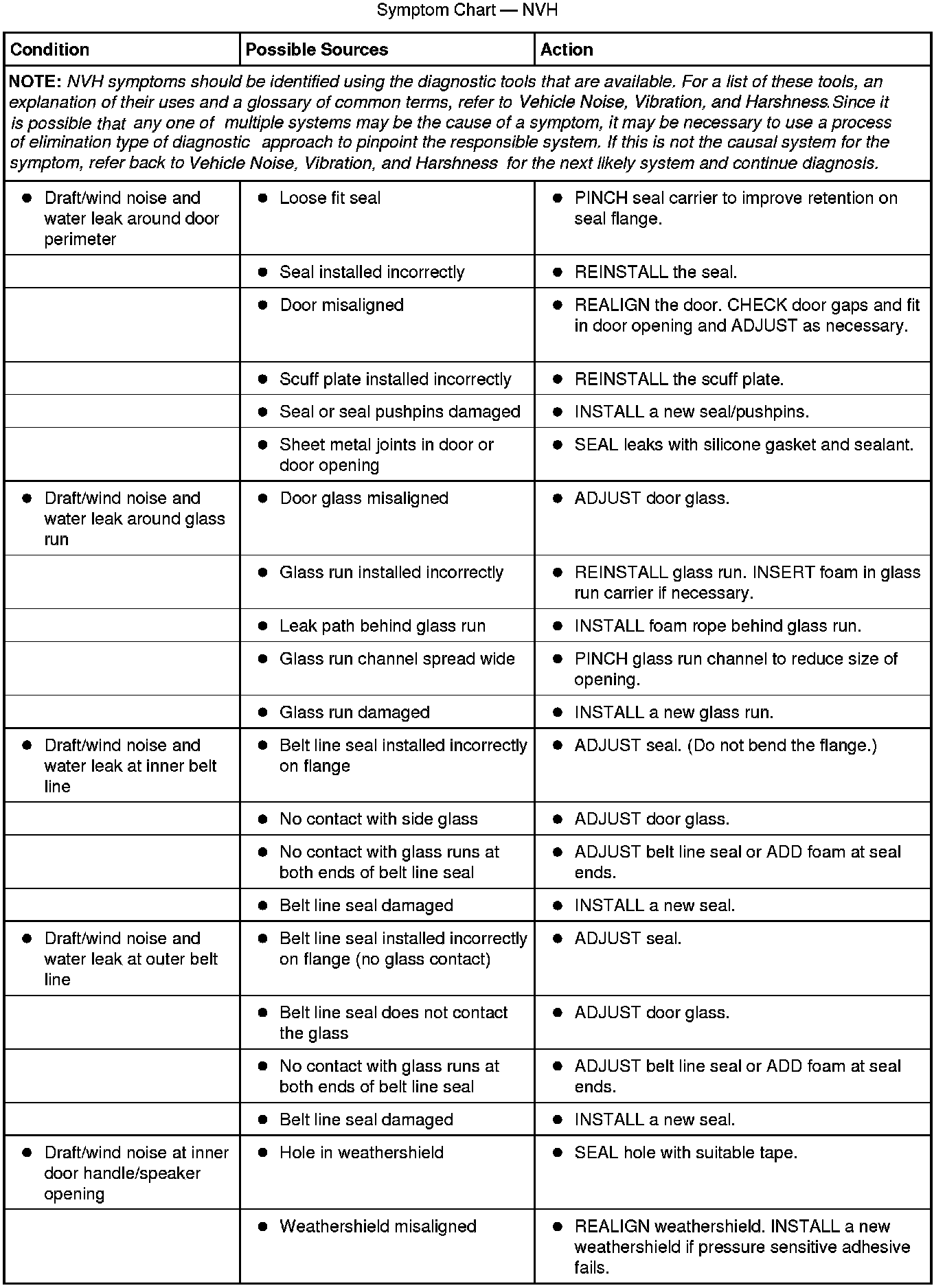 Symptom Chart - NVH