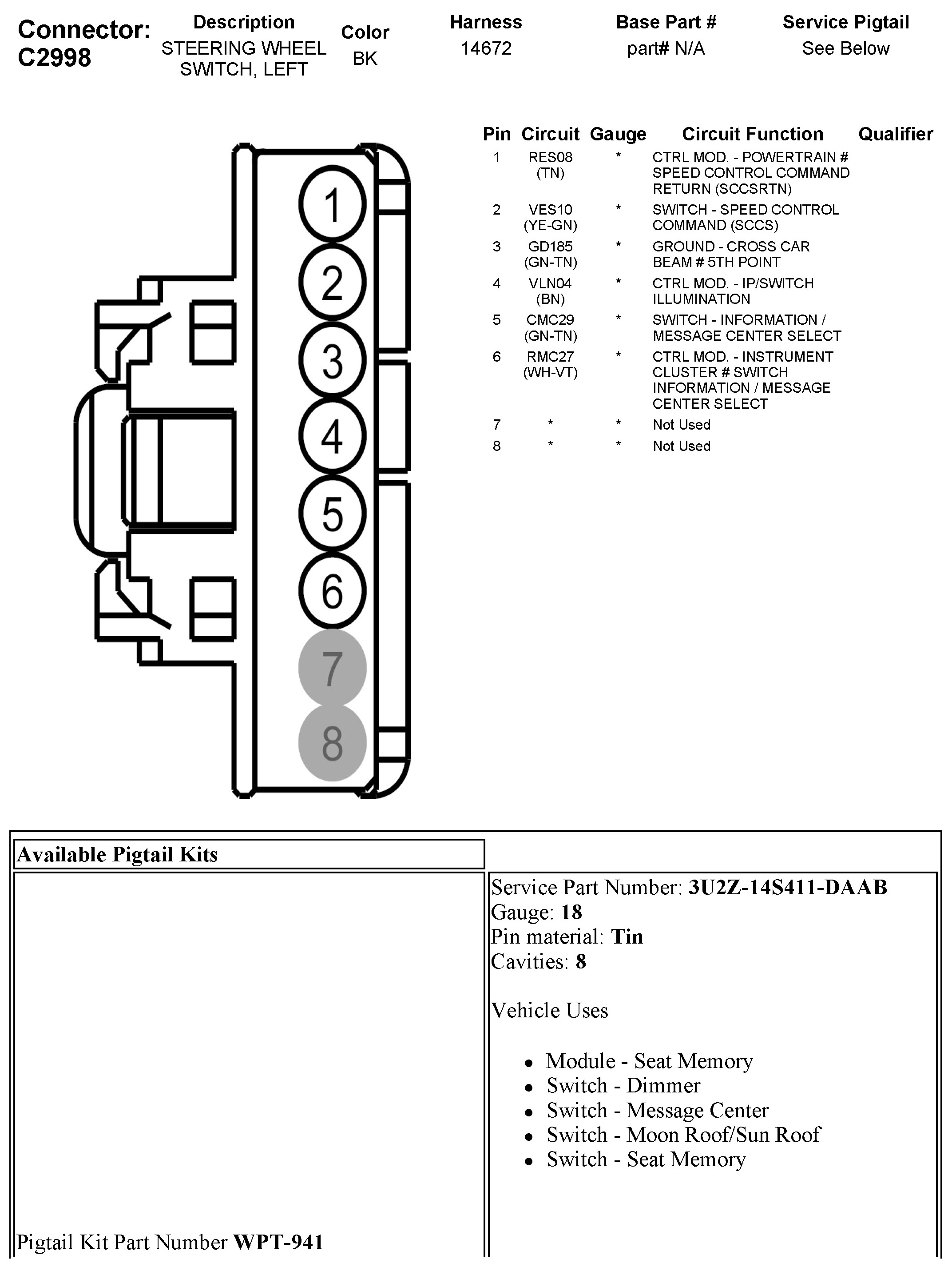C2998 Steering Wheel Switch, Left
