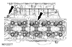 NOTICE: During engine repair procedures, cleanliness is extremely important. Any foreign material, including any material created while cleaning gasket surfaces that enters the oil passages, coolant passages or the oil pan, may cause engine failure.