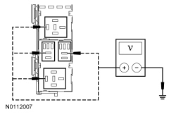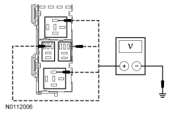 - Measure the voltage between the suspect upfitter relay, relay box face side and ground as follows: