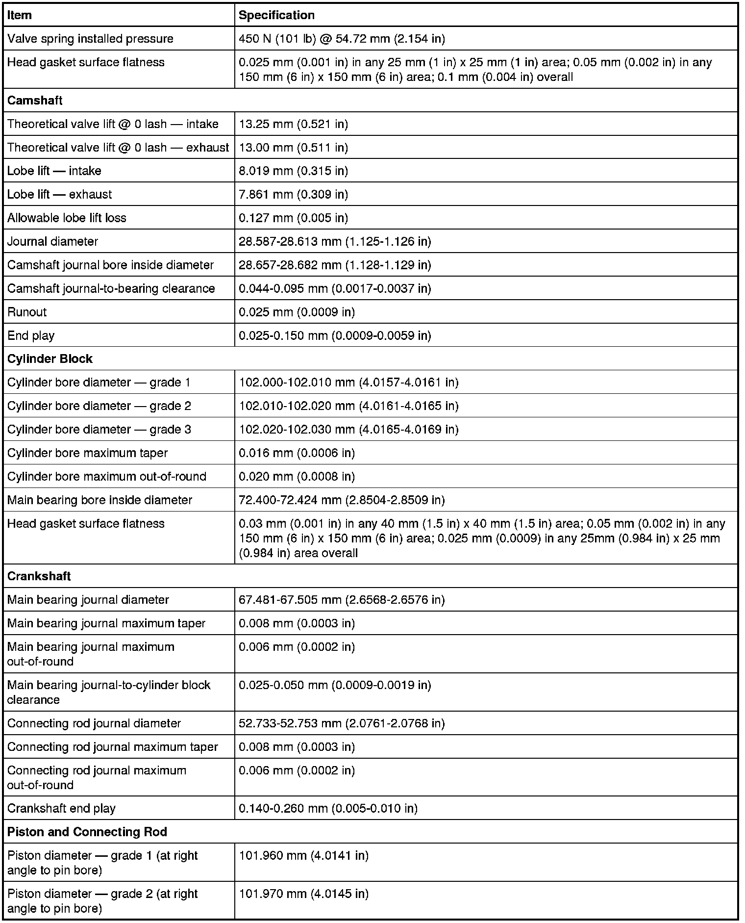 Intake Manifold Specifications