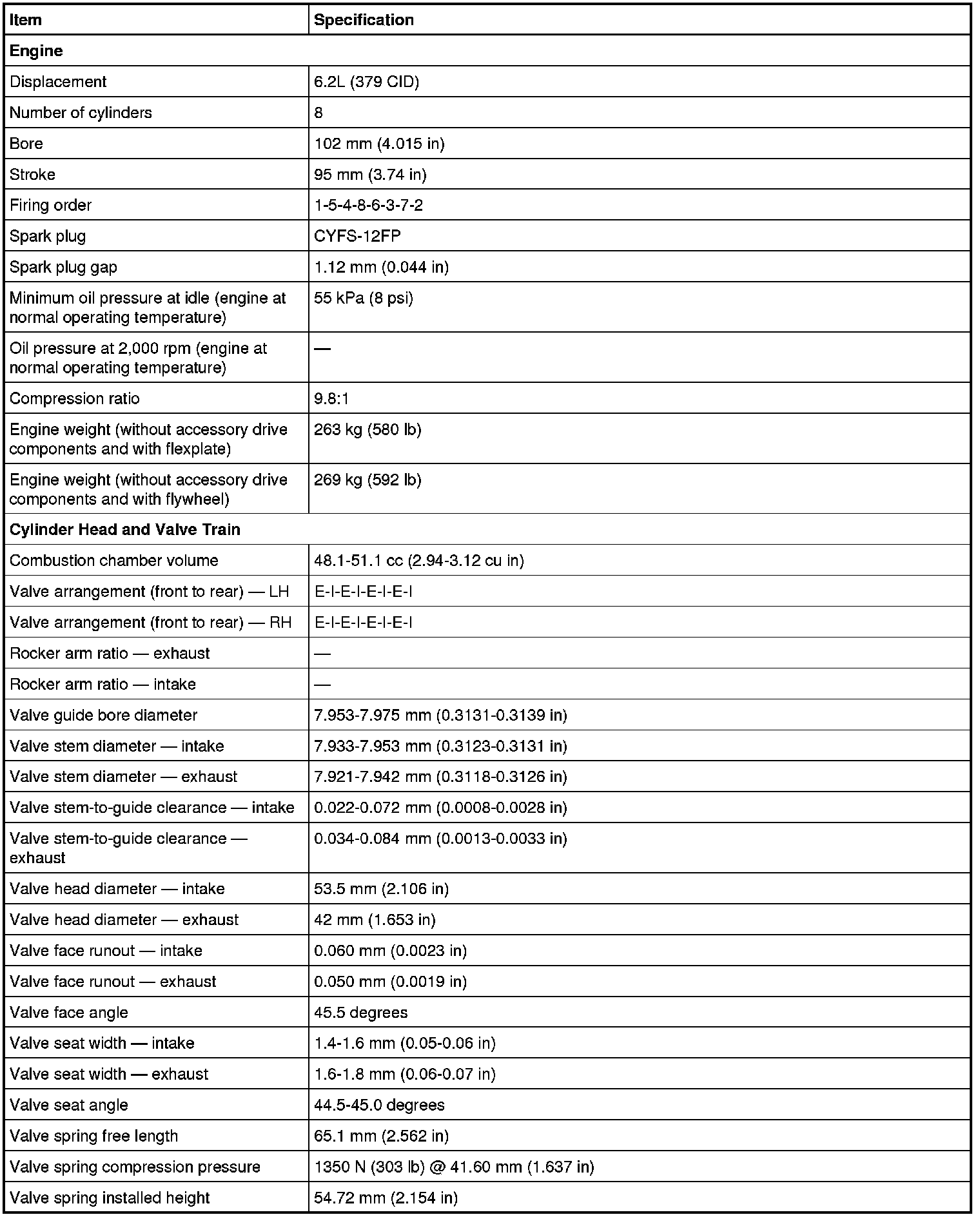 Camshaft Gear/Sprocket Specifications