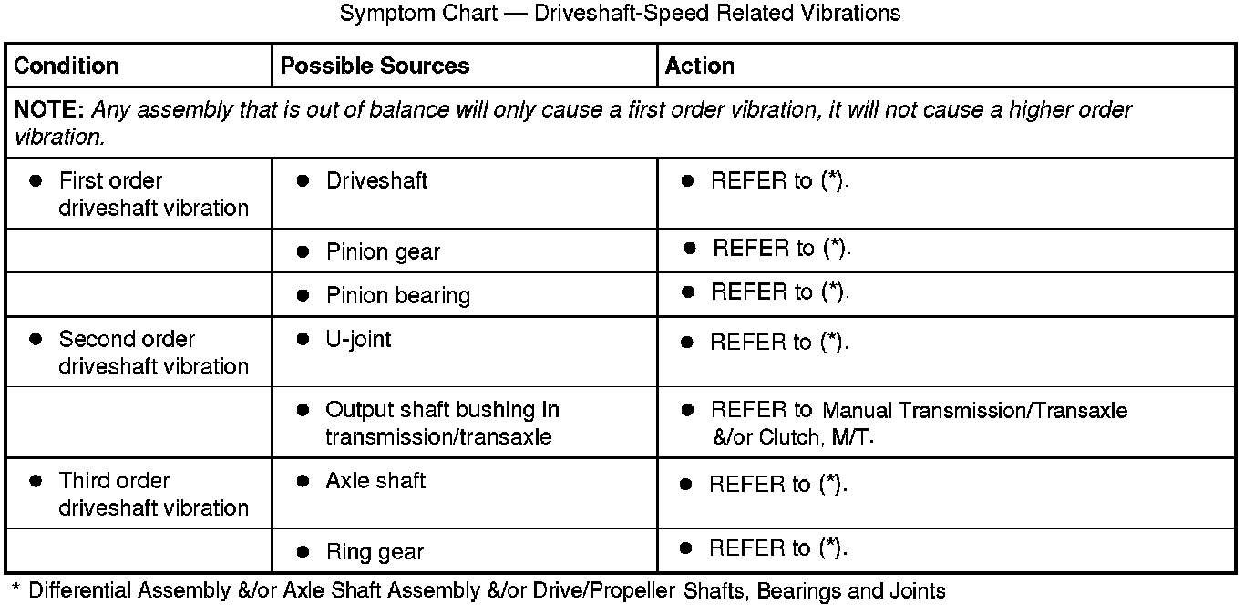 Symptom Chart - Driveshaft-Speed Related Vibrations