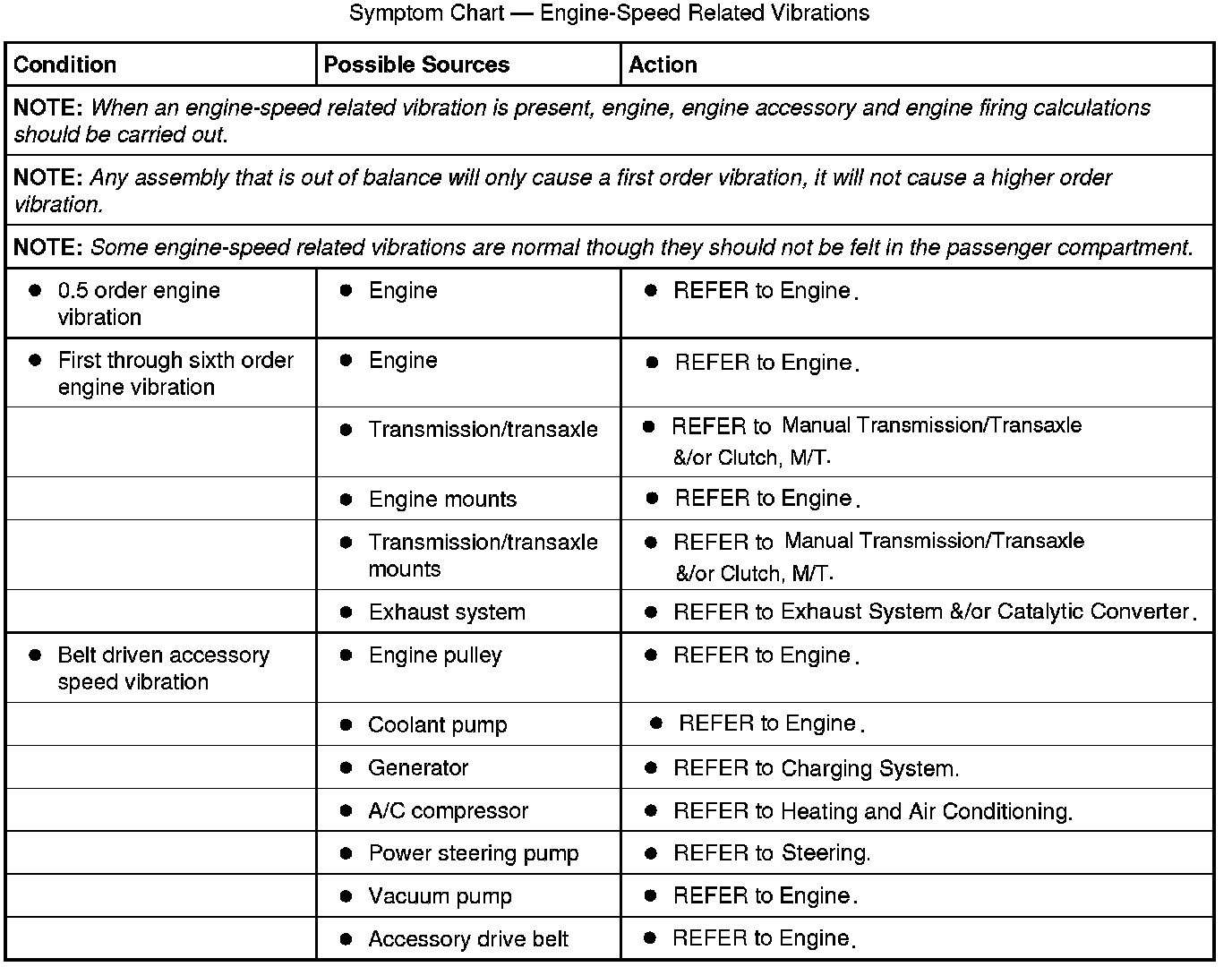Symptom Chart - Engine-Speed Related Vibrations