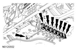 8. Install the transmission fluid pan and filter. For additional information, refer to Fluid Pan, Gasket and Filter Fluid Pan, Gasket and Filter.