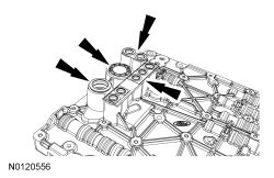1. Remove the fluid pan, gasket and filter. For additional information, refer to Fluid Pan, Gasket and Filter Fluid Pan, Gasket and Filter.