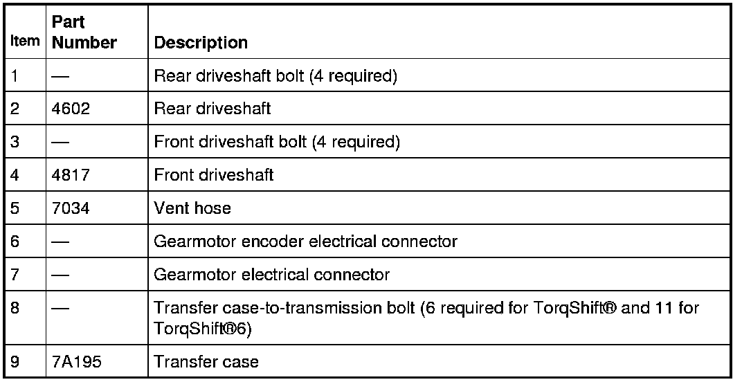 NOTE: Vehicles with electronic shift transfer case and TorqShift(R) transmission shown, manual shift transfer case and/or TorqShift(R)6 transmission similar.