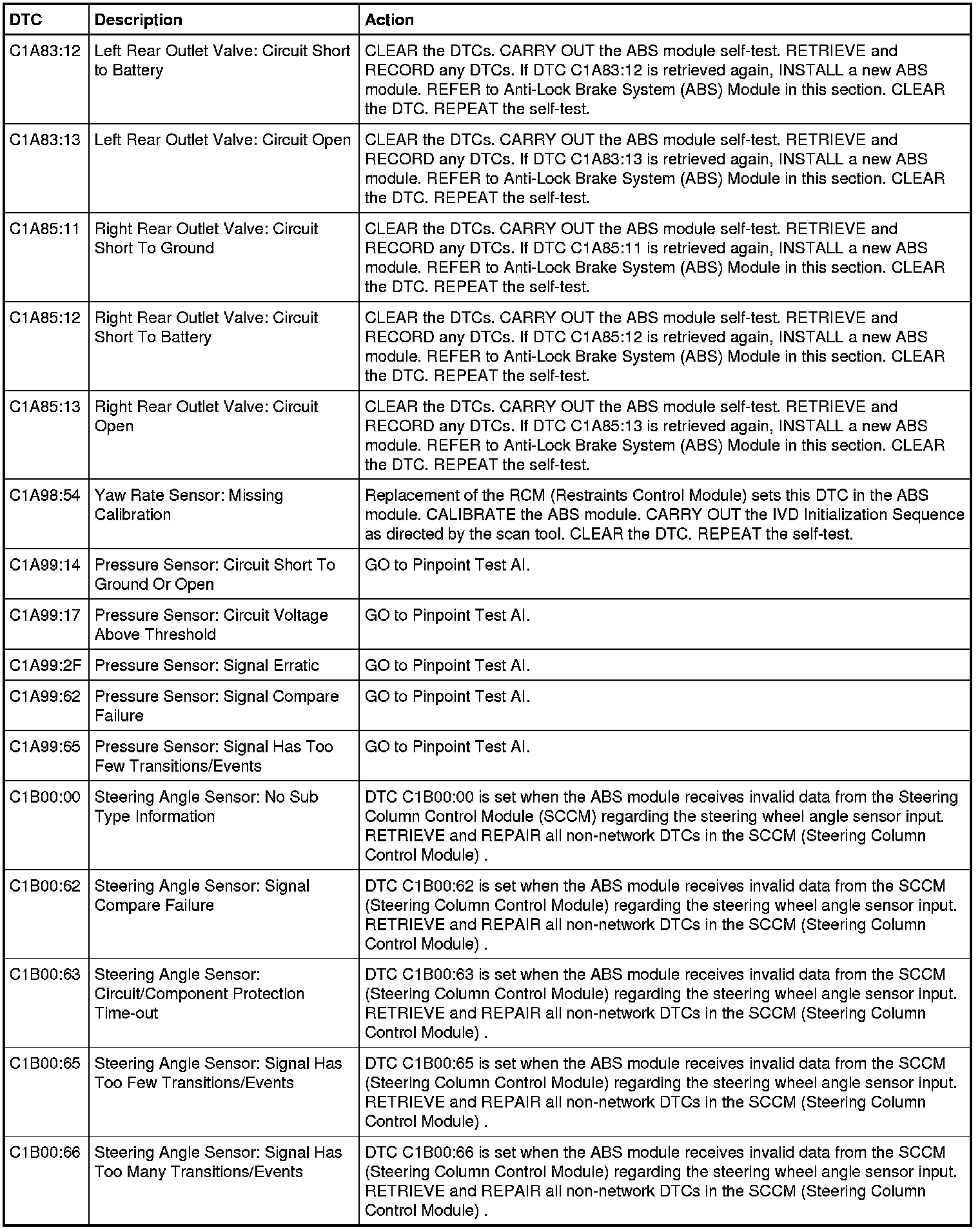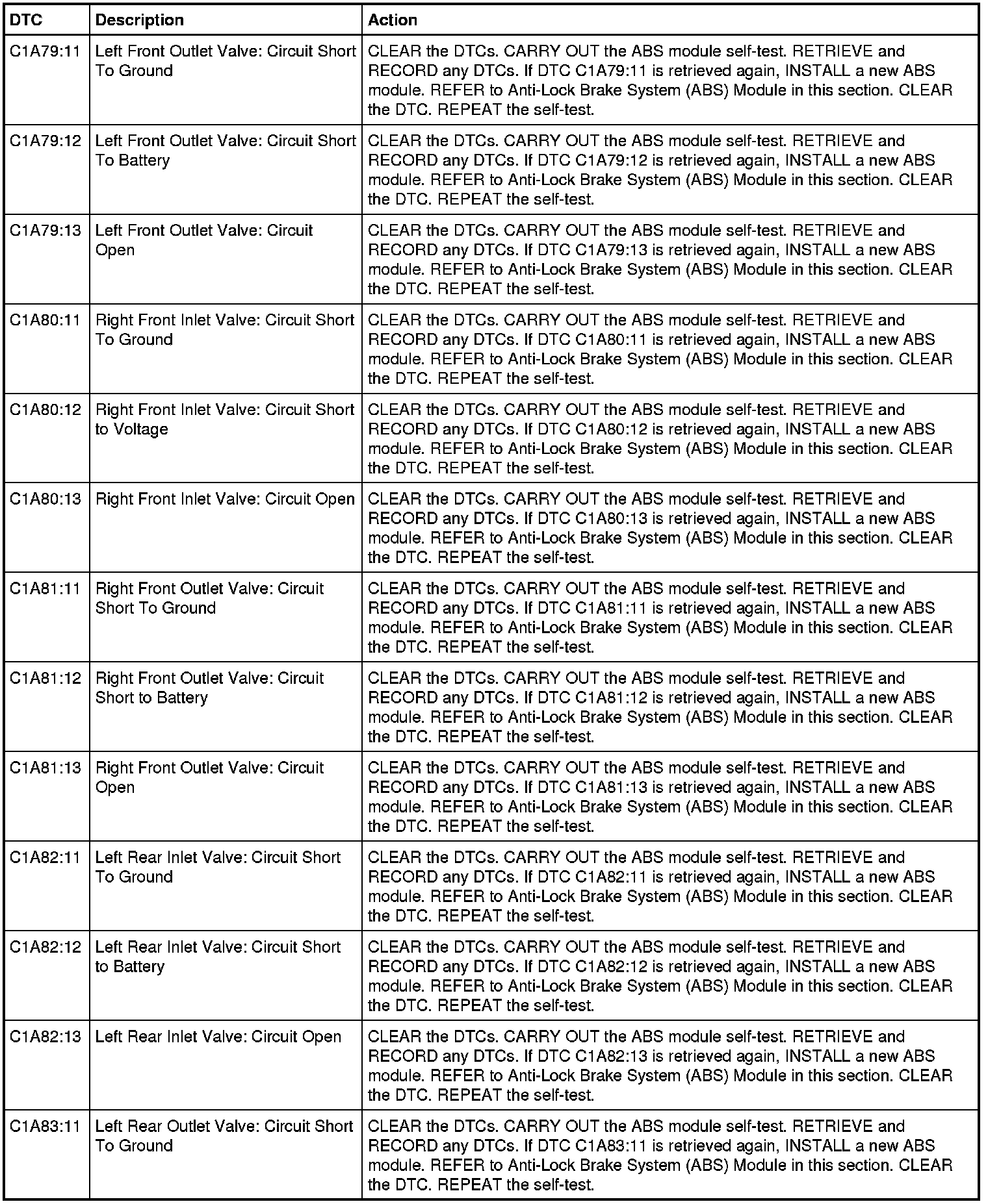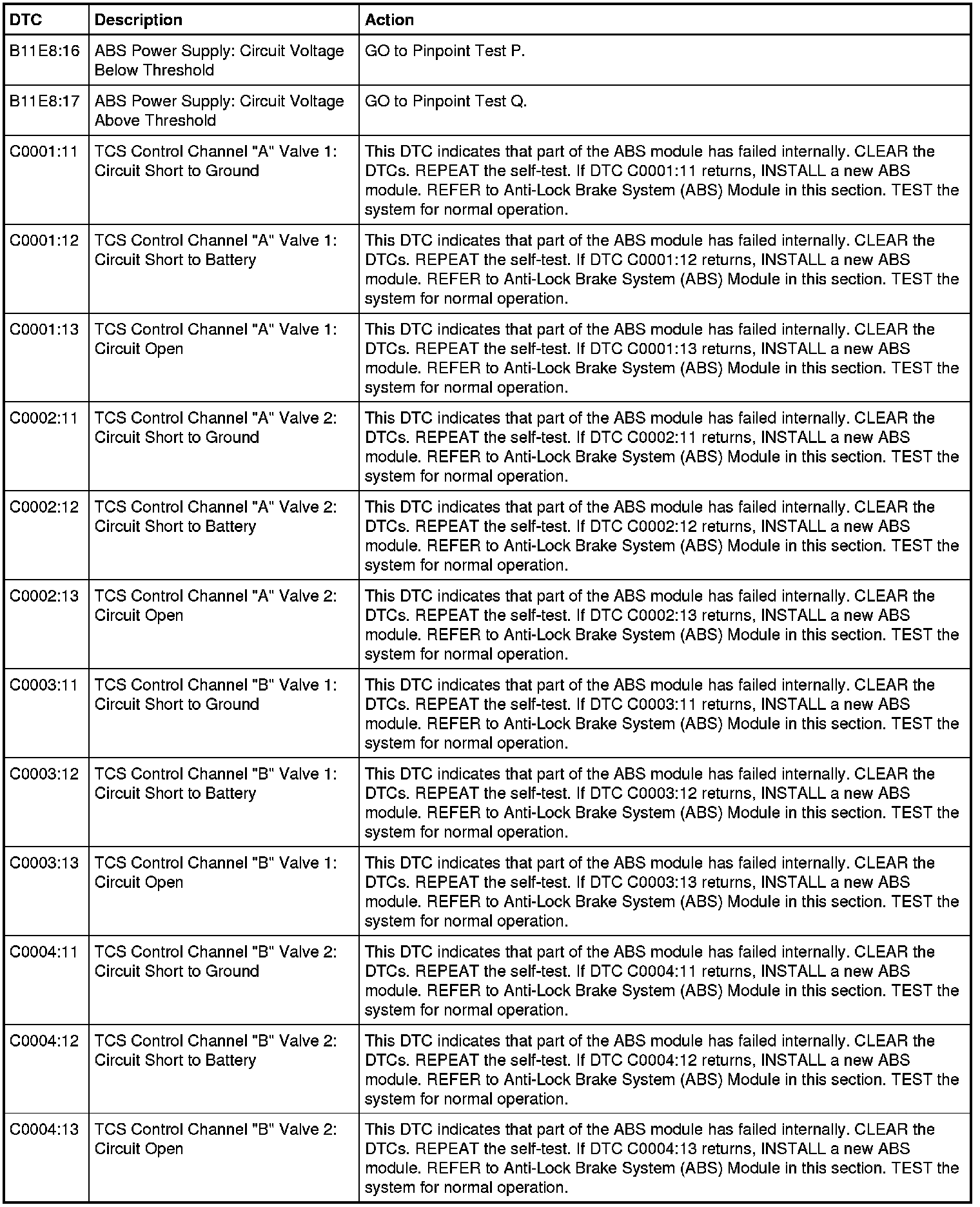 ABS Module DTC Chart - Three-Channel with Trailer Sway Control