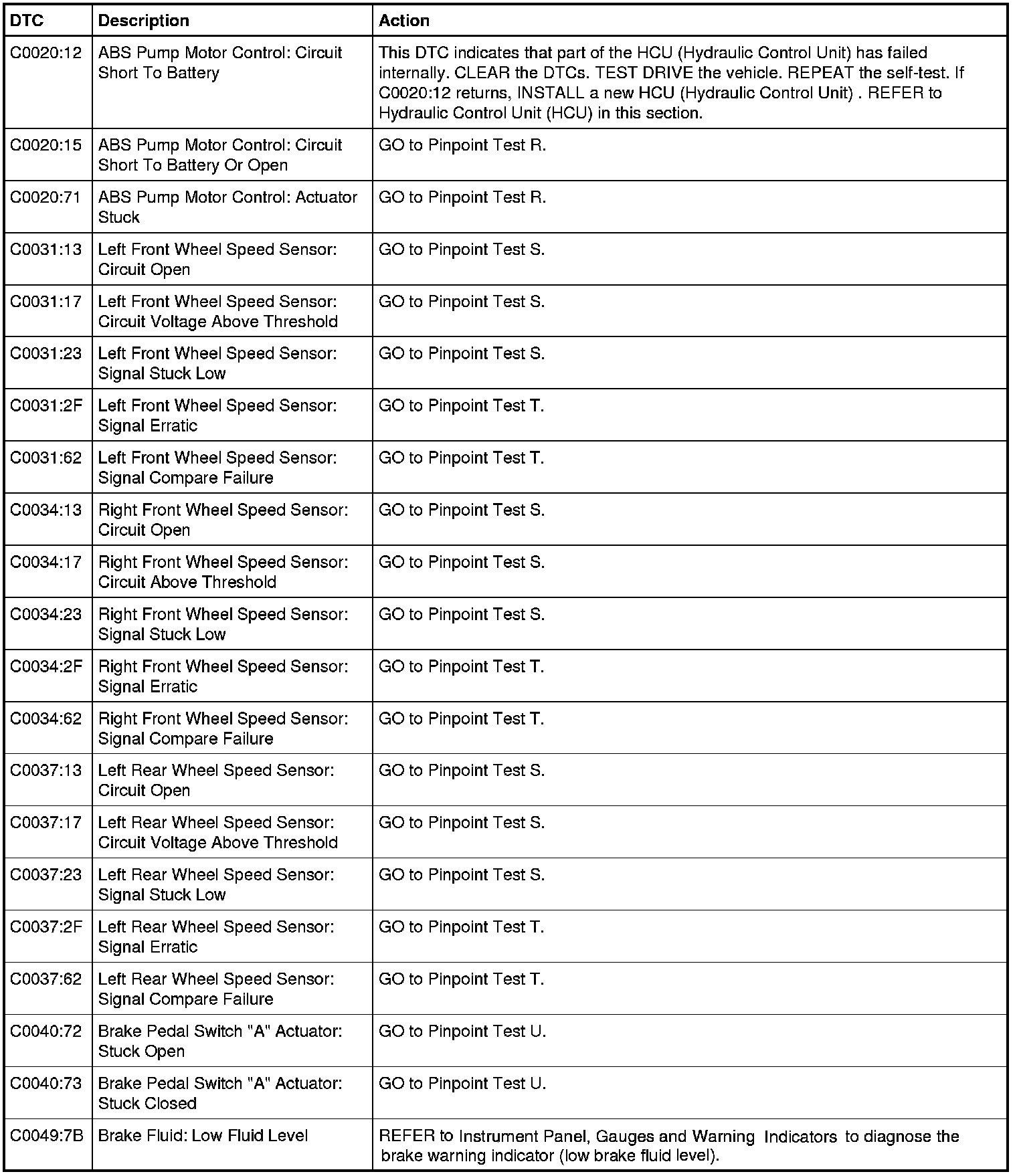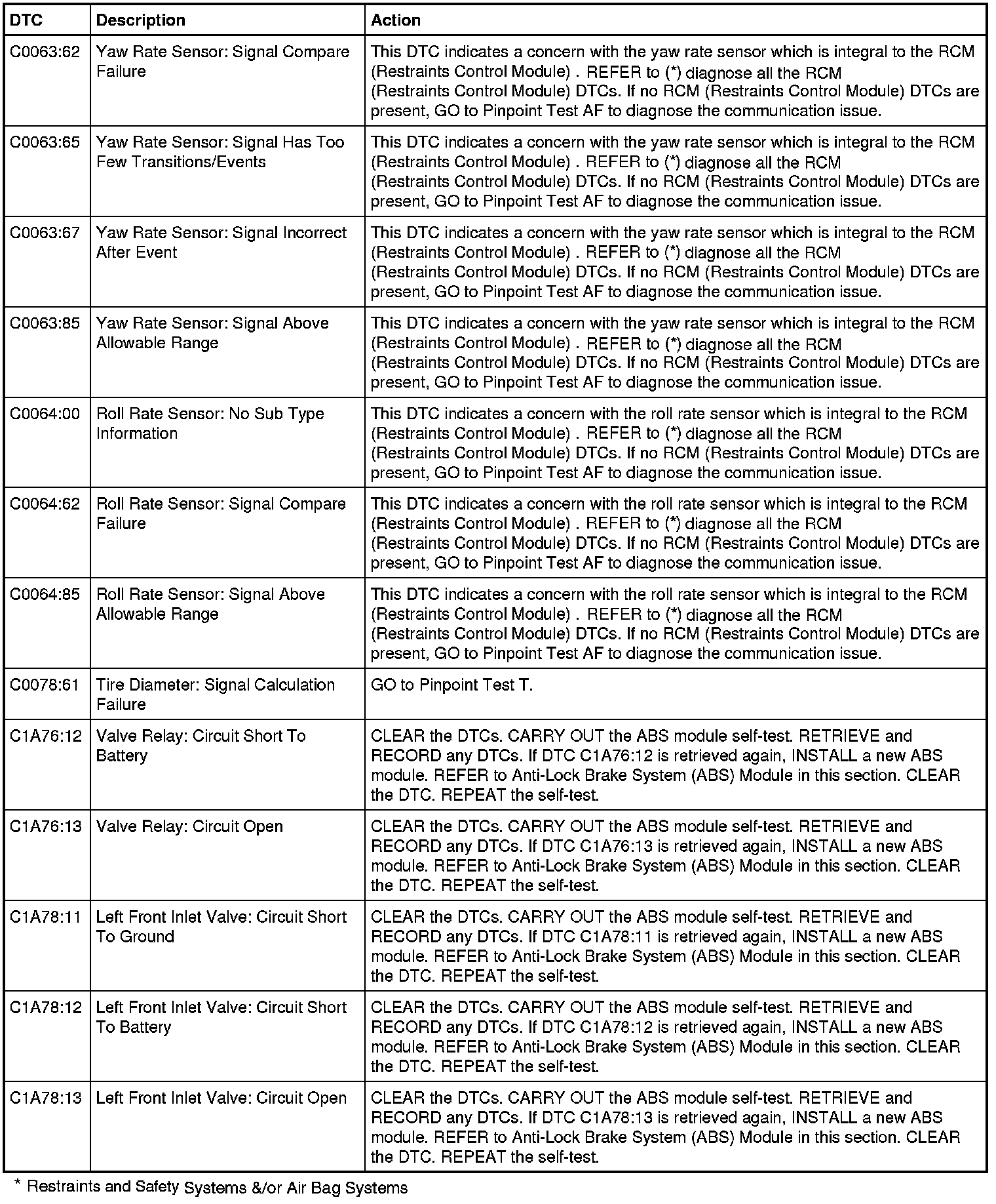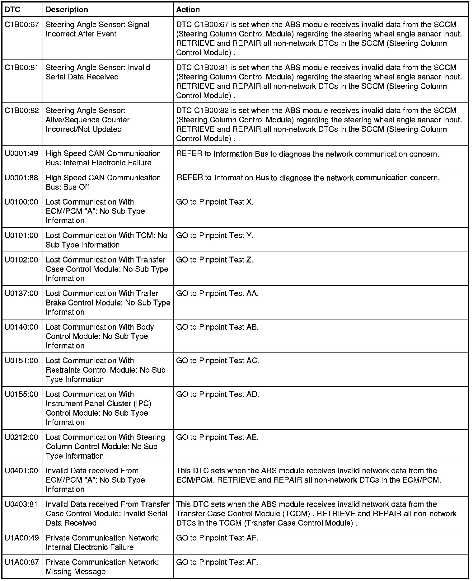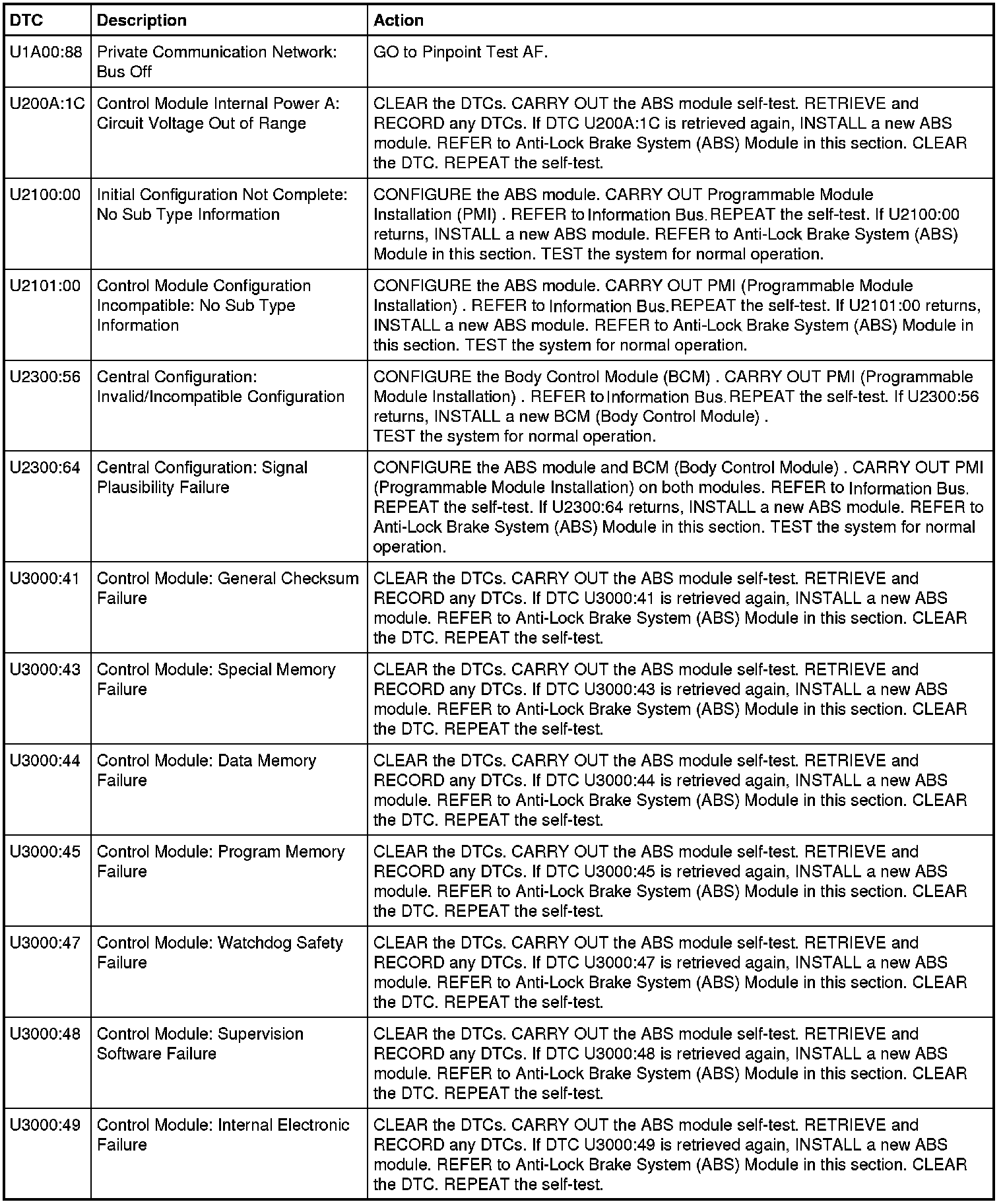 ABS Module DTC Chart - Three-Channel with Trailer Sway Control