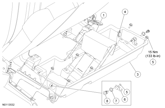 2. Remove the 6 rear seat storage compartment bolts.