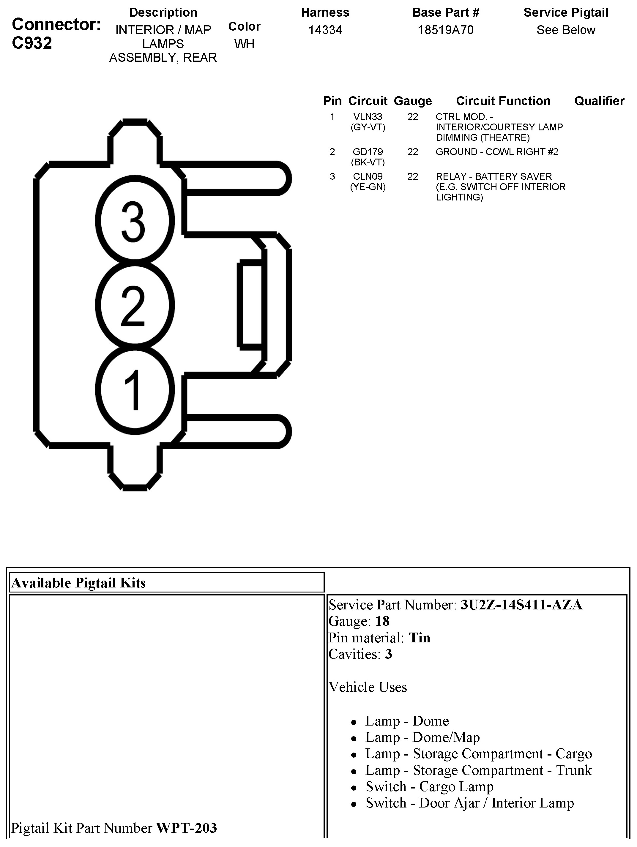 C932 Interior/MAP Lamps Assembly, Rear
