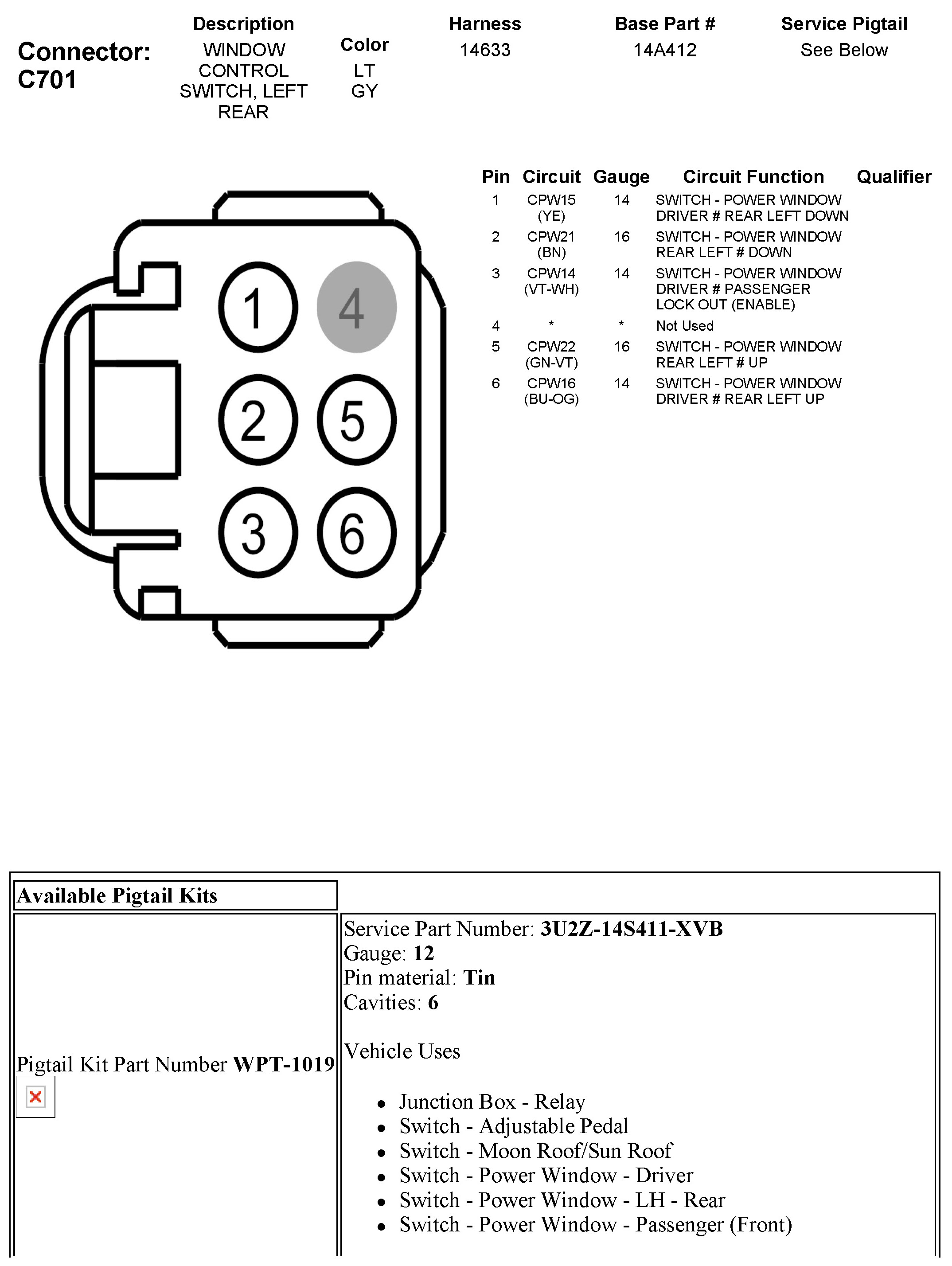 C701 Window Control Switch, Left Rear