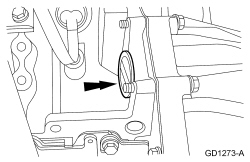 25. Position the transmission fluid level indicator tube and install the bolt.