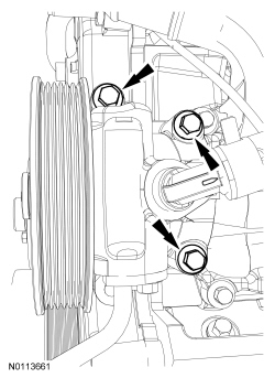 18. Position the power steering pump and install the 3 bolts.