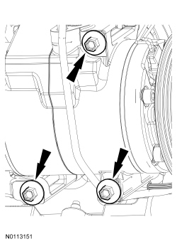 16. Position the A/C compressor and install the 3 bolts.