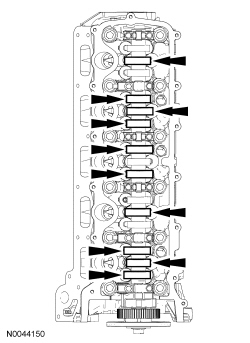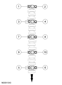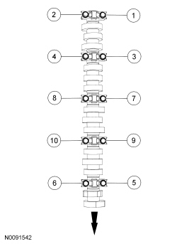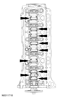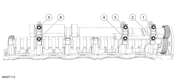 24. NOTICE: The camshaft bearing caps must be installed in their original locations. Record camshaft bearing cap locations. Failure to follow these instructions may result in engine damage.