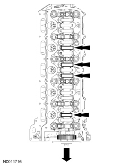 Remove only the 4 camshaft roller followers shown in the illustration from the LH cylinder head.