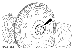 3. NOTICE: Only use hand tools to loosen the sprocket bolt or damage to the camshaft or camshaft sprocket may occur.