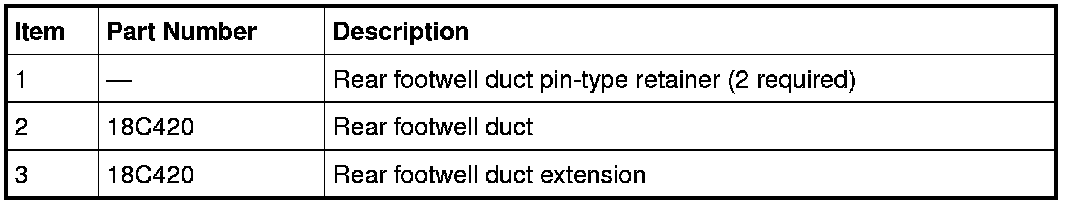 4. NOTE: Position the carpet to allow access to the 2 rear footwell duct pin-type retainers.