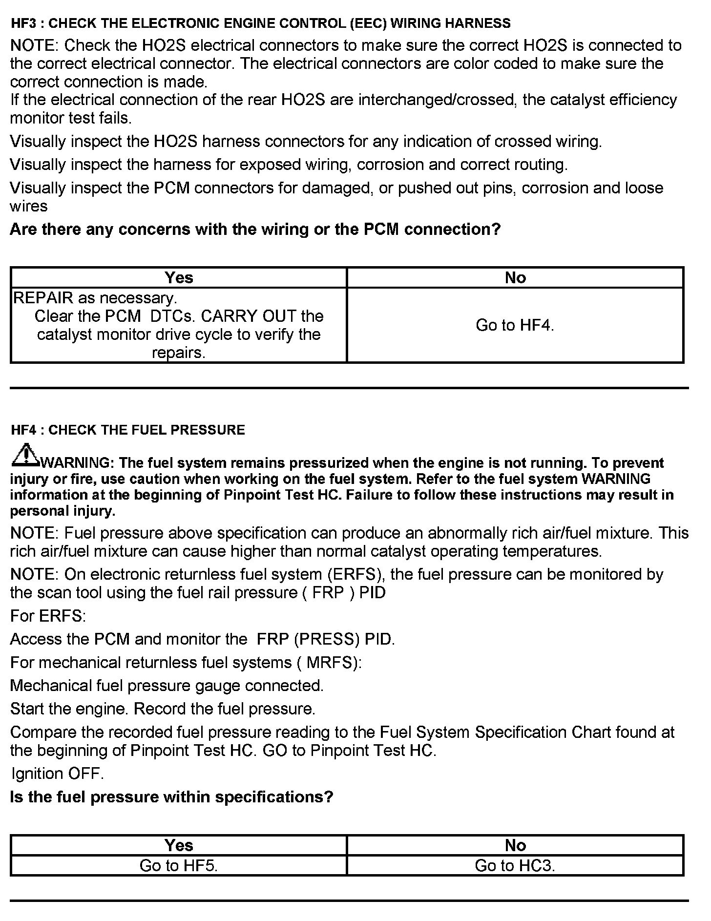 Test HF: Catalyst Efficiency Monitor and Exhaust Systems
