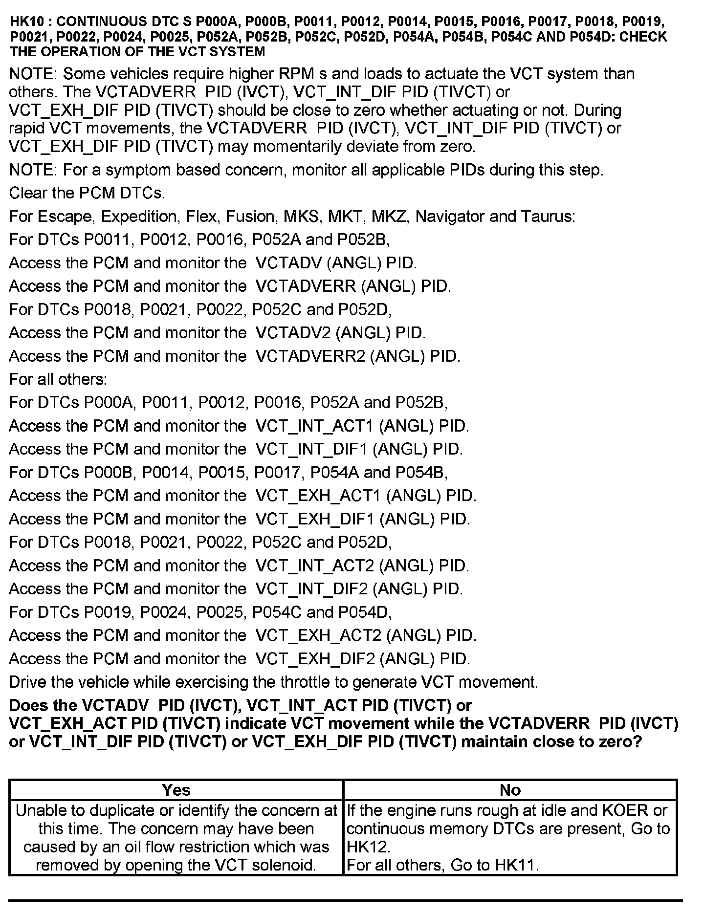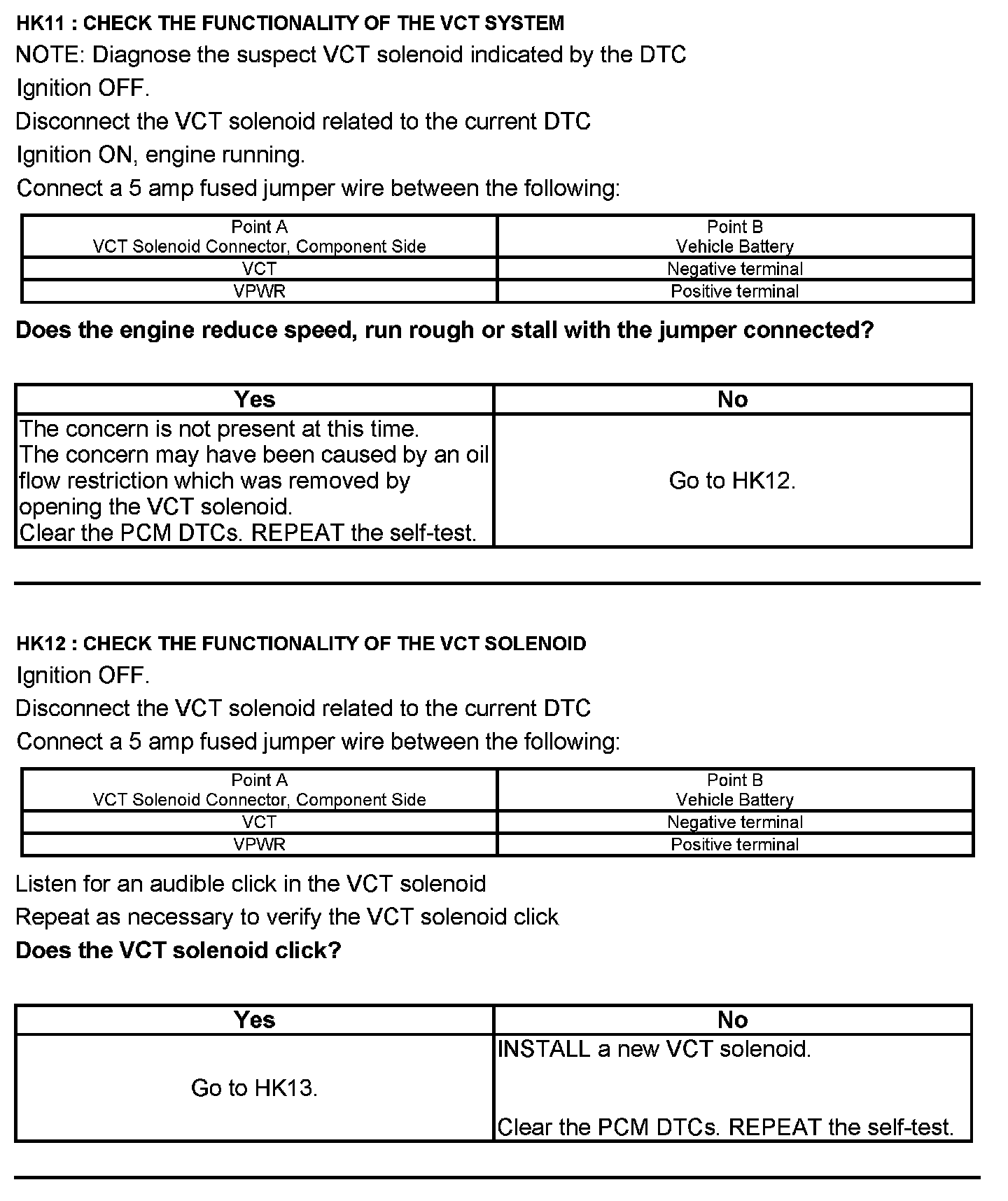 Test HK: Variable Camshaft Timing (VCT)