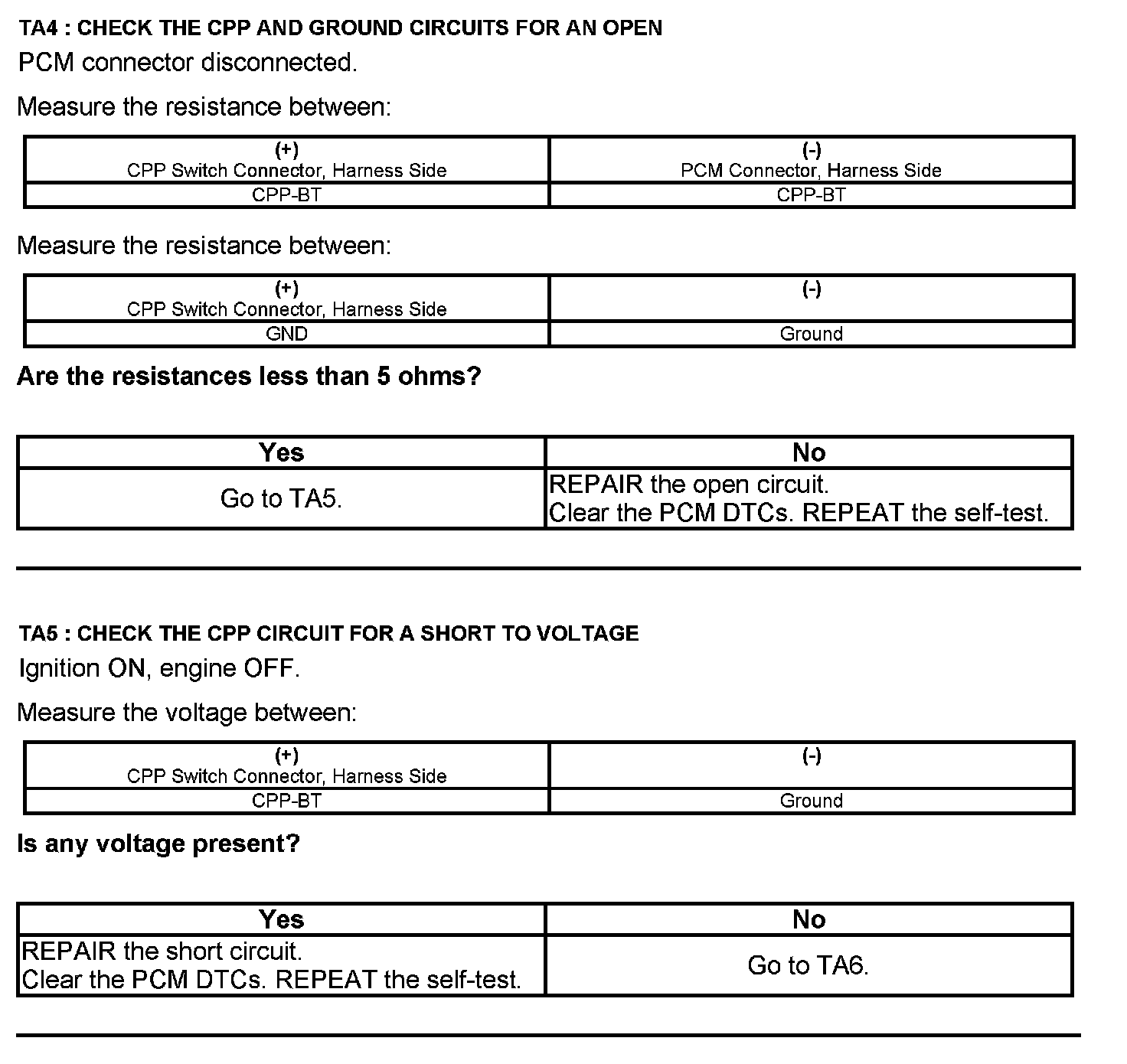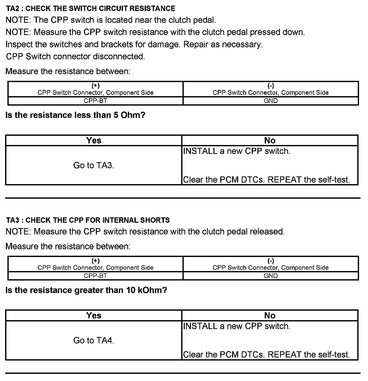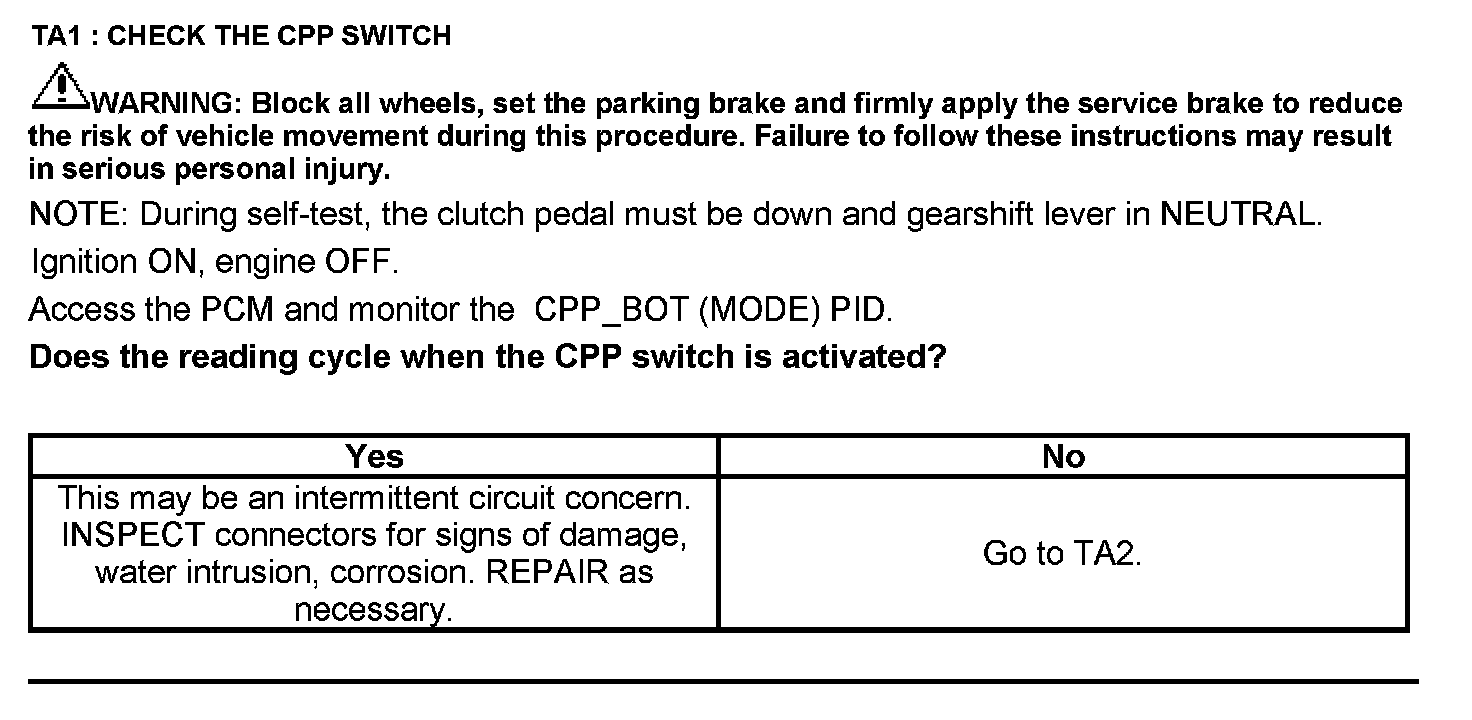 Test TA: Clutch Pedal Position (CPP#2) Switch