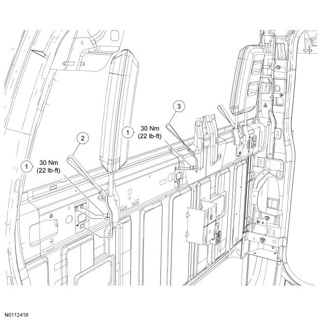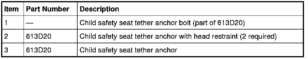 1. Remove the rear seat backrest for access to the child safety seat tether anchor bolt.