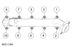 Install 10 new exhaust manifold nuts in the sequence shown.