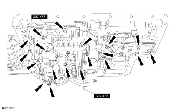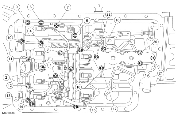1. Remove the transmission fluid pan, gasket and filter. For additional information, refer to Fluid Pan, Gasket and Filter Automatic Transaxle/Transmission - TorqShift(R).